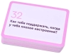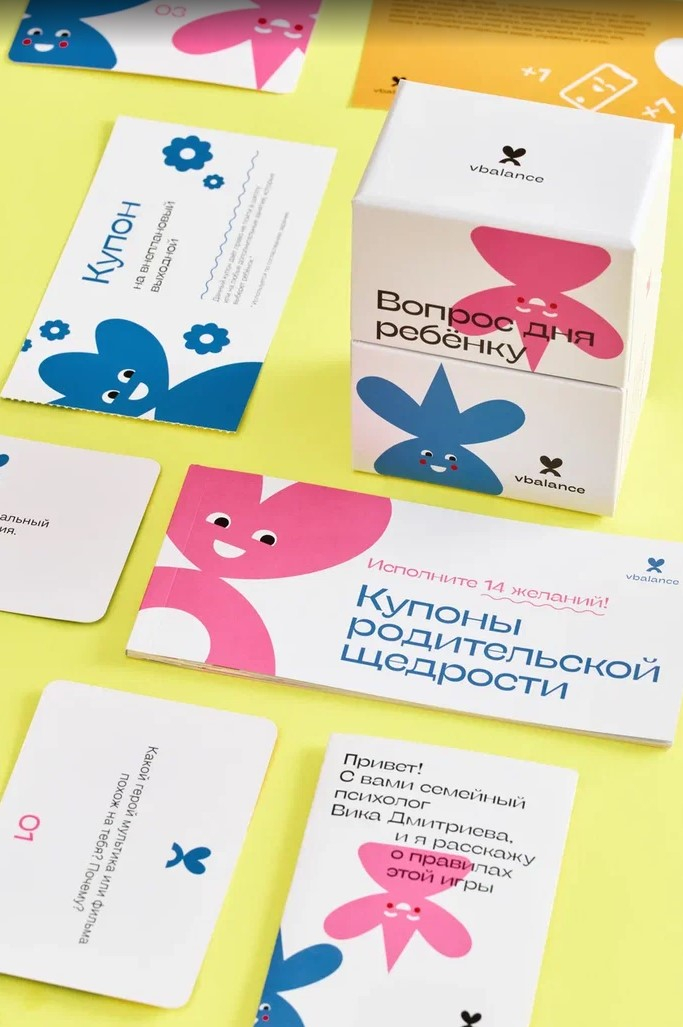 The game "Question of the day to the child". Card game from family psychologist and author of popular blog Vicky Dmitrieva. We want to be on the same page with our children and easily talk about any topic, but time after time we repeat the standard "how are you?" and get one-word answers. It turns out that it's not easy to find the right questions. In this game, I have prepared for you such questions that will allow you to maximize the disclosure of your child. It is live communication with a loving adult gives everything necessary not only for the emotional well-being of the child and his psychological comfort, but also for the development of his intellect. The game helps to build sincere and trusting relationships with both kids and teenagers. The game is designed in a convenient, compact format. Play anywhere: at home, on a trip, on a walk, in line or in traffic. The main thing: listen carefully to the answers and be yourself - so you will not only better understand your child, but also yourself. And please don't expect your children to be like you or like you want them to be. Just help them to be themselves.