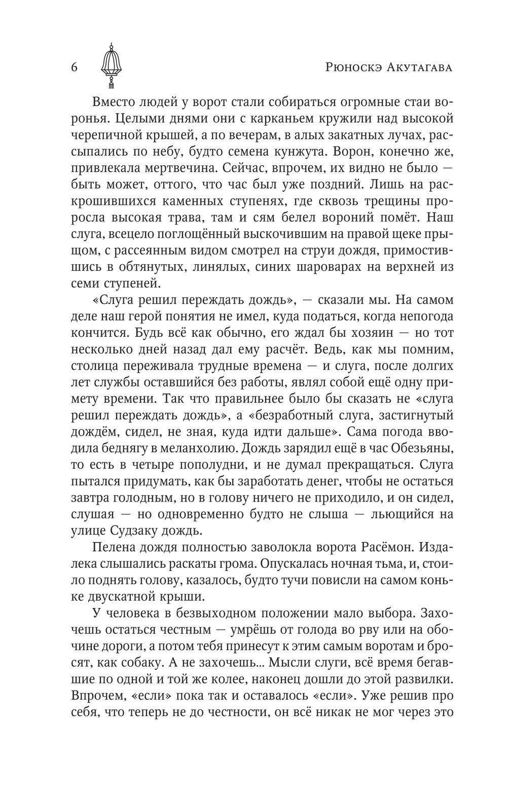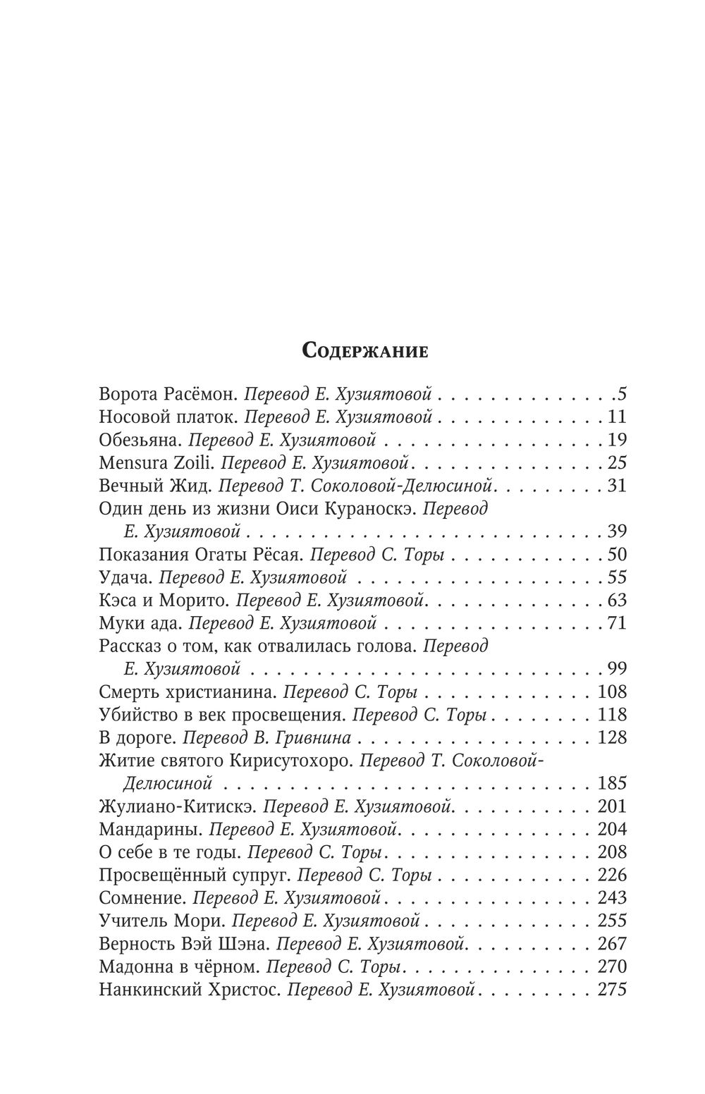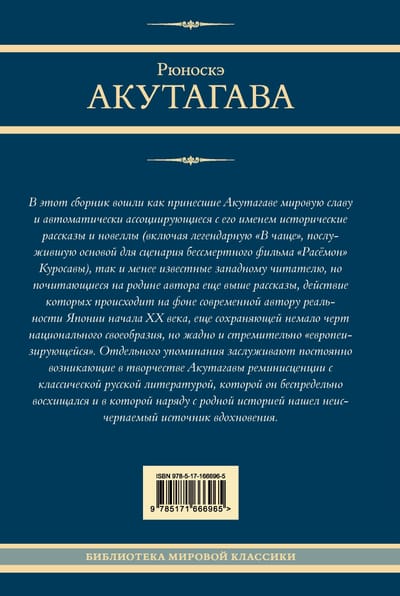 This collection includes both historical stories and novellas that brought Akutagawa worldwide fame and are automatically associated with his name (including the legendary "In the Thicket", which served as the basis for the script of the immortal film "Rashomon" by Kurosawa), as well as stories that are less known to Western readers, but are even more highly revered in the author's homeland, the action of which takes place against the backdrop of the contemporary reality of Japan at the beginning of the 20th century, which still retains many features of national identity, but is greedily and rapidly "Europeanizing".