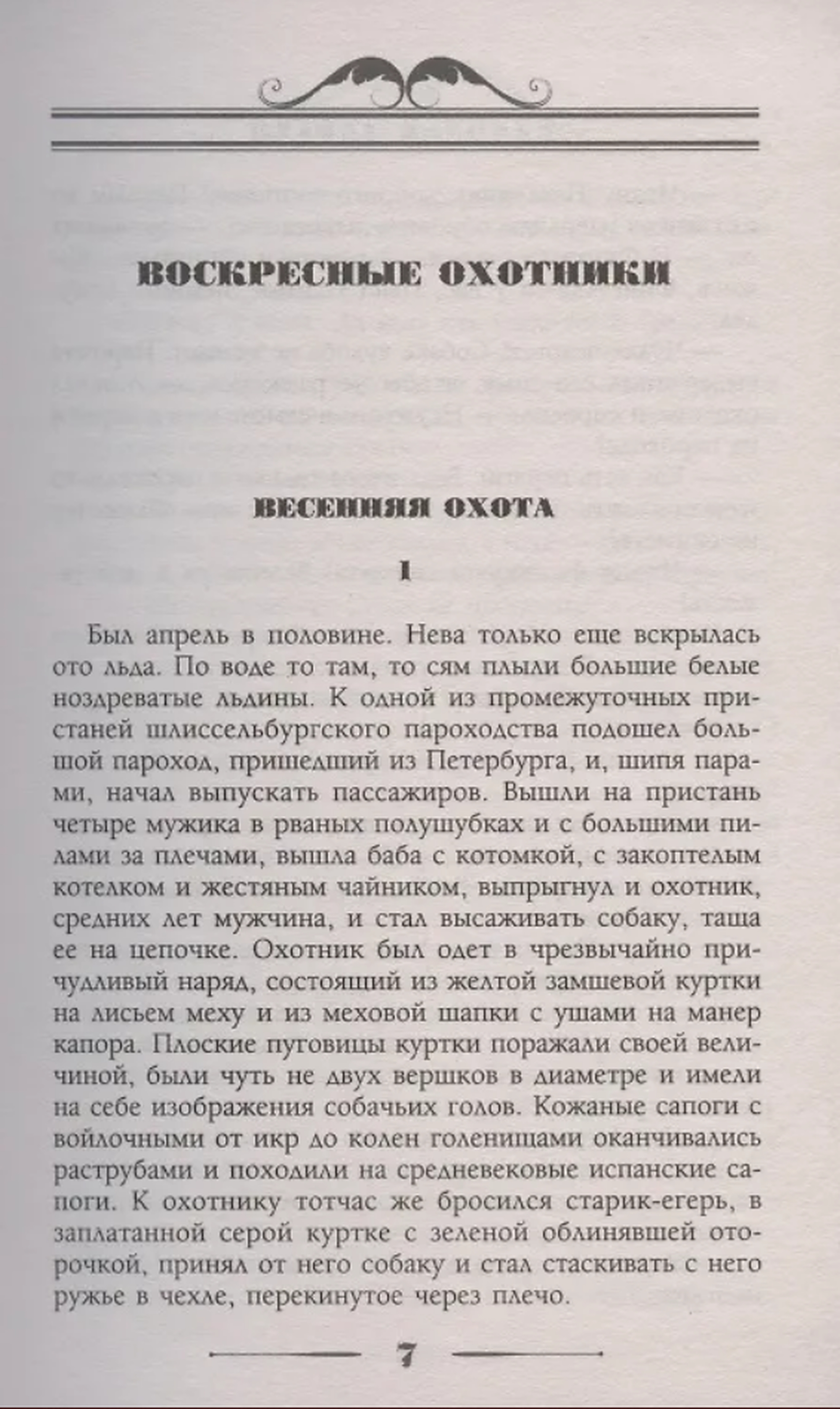 N.A. Leikin, a renowned writer of the late 19th and early 20th centuries, once again demonstrates his mastery of words. Today we present a collection of works dedicated to hunting, fishing, and other pursuits and interests of humankind, including a love of pigeons, dogs, horses, and even insects. Some of the characters share a passion for collecting rarities and a love of beauty, as well as strange habits, vices, and addictions. It has long been known that stories of hunters and fishermen, with their adventures, anecdotes, and exaggerations, are almost always anecdotes, and when delivered by a virtuoso writer, these funny, ironic, and good-natured texts are sure to leave no one indifferent. They will delight and lift the spirits of even the most discouraged reader.