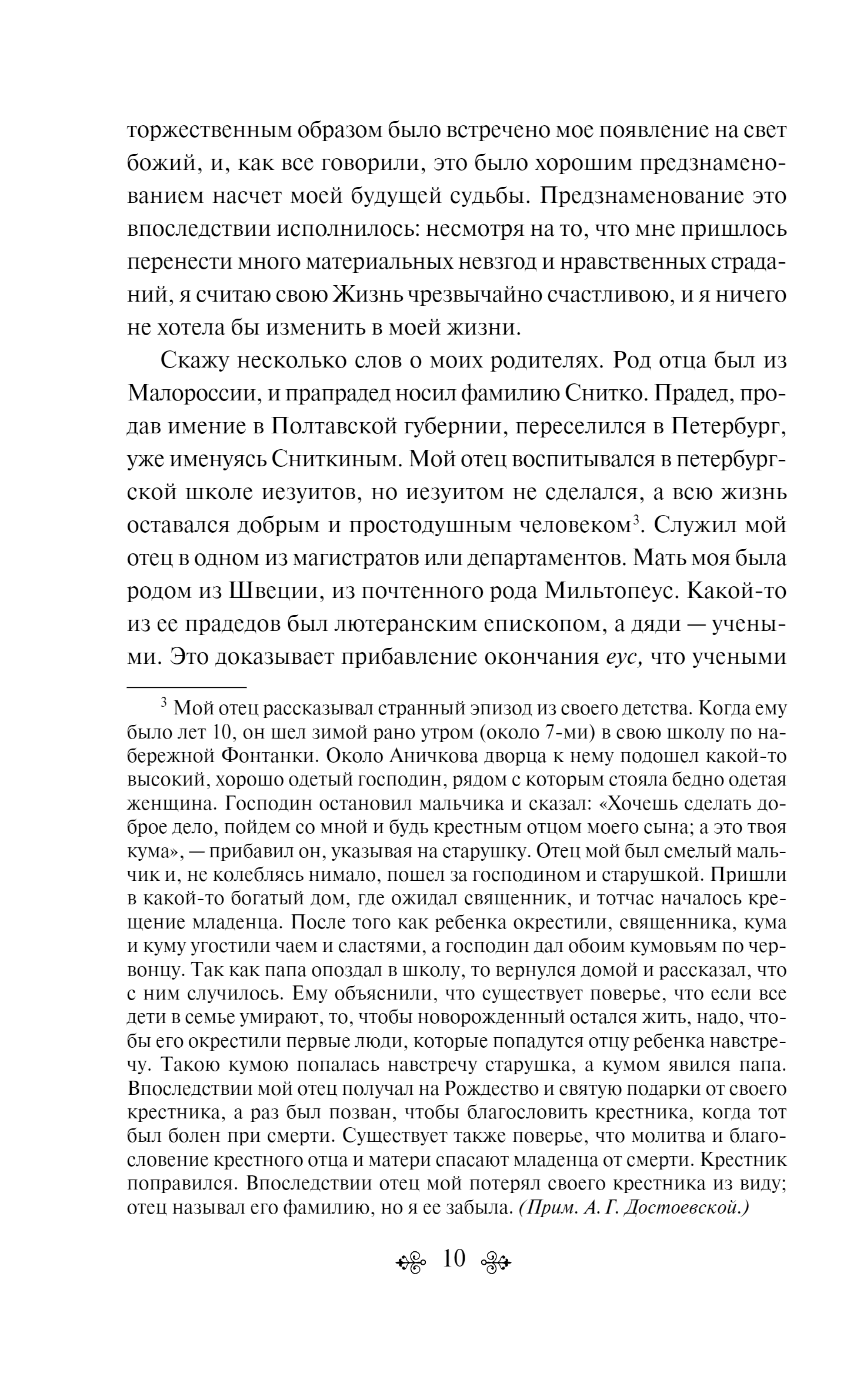 Anna Grigoryevna Dostoevskaya (maiden name Snitkina, 1846-1918) was the second wife of the great writer Fyodor Mikhailovich Dostoevsky and the mother of his children. She was a stenographer, publisher, publisher of her husband's creative heritage, and bibliographer. Thanks to her memoirs we can recognize the genius writer not only as the author of world masterpieces. Anna Grigorievna tells us how he was in his family and private life.
