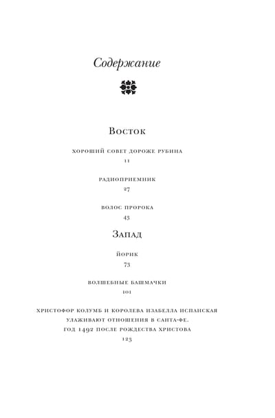 All three sections of the book - "East", "West" and "East, West" - are permeated by common themes: forced displacement, poverty, intolerance, clash of cultures and traditions, differences in morals and values of different countries and religions.