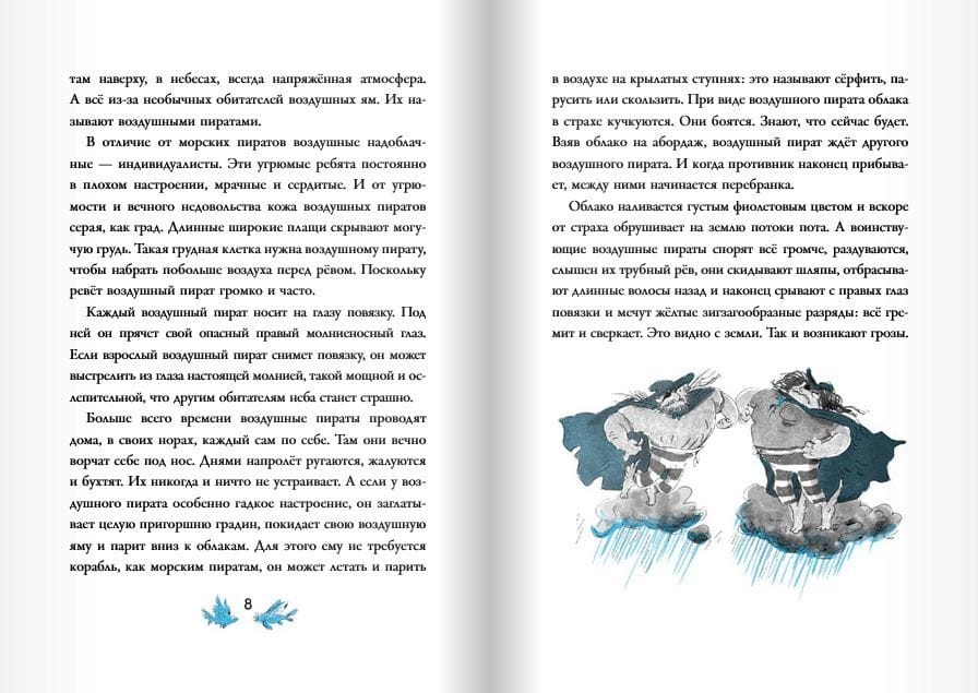 Air pirates are gray-skinned creatures, angry and grouchy; more than anything else, they love to argue. No one is as good at throwing lightning and rumbling as Adiaba, the Air Pirates' teacher. Which he does with success until Zwolle, a small, white-skinned air pirate without a lightning bolt out of his eye, comes to him, peaceful and friendly. Adiaba becomes unwittingly attached to the boy and keeps him with him in defiance of the law. And has no idea that it is this boy who will show unprecedented courage and turn the world of air pirates upside down ... A fantastic poetic aerial adventure!