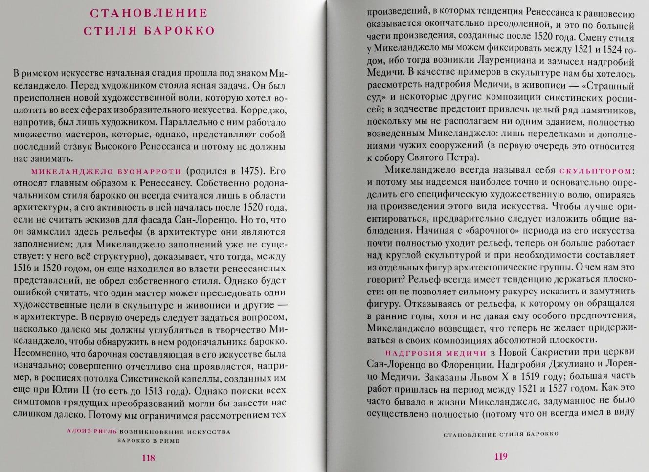 Alois Riegl (1858–1905) was an Austrian art historian, one of the classics of the discipline, and the creator of an original form of formalism and theory of the development of the Baroque. His lectures on the origins of the Roman Baroque, delivered between 1898 and 1902 at the University of Vienna and subsequently revised for publication, opened new horizons in the field. In his approach to style, its interpretation, and periodization, Riegl offered a different perspective than Heinrich Wölfflin and his other contemporaries: by situating the beginning of a new artistic era in Michelangelo's mature style of the 1520s, he saw the Baroque not as a decline, as had previously been believed, but as the beginning of modern "subjective" art. Translated into Russian for the first time, this book is full of insightful observations on painting, sculpture, and architecture from Michelangelo to Caravaggio.