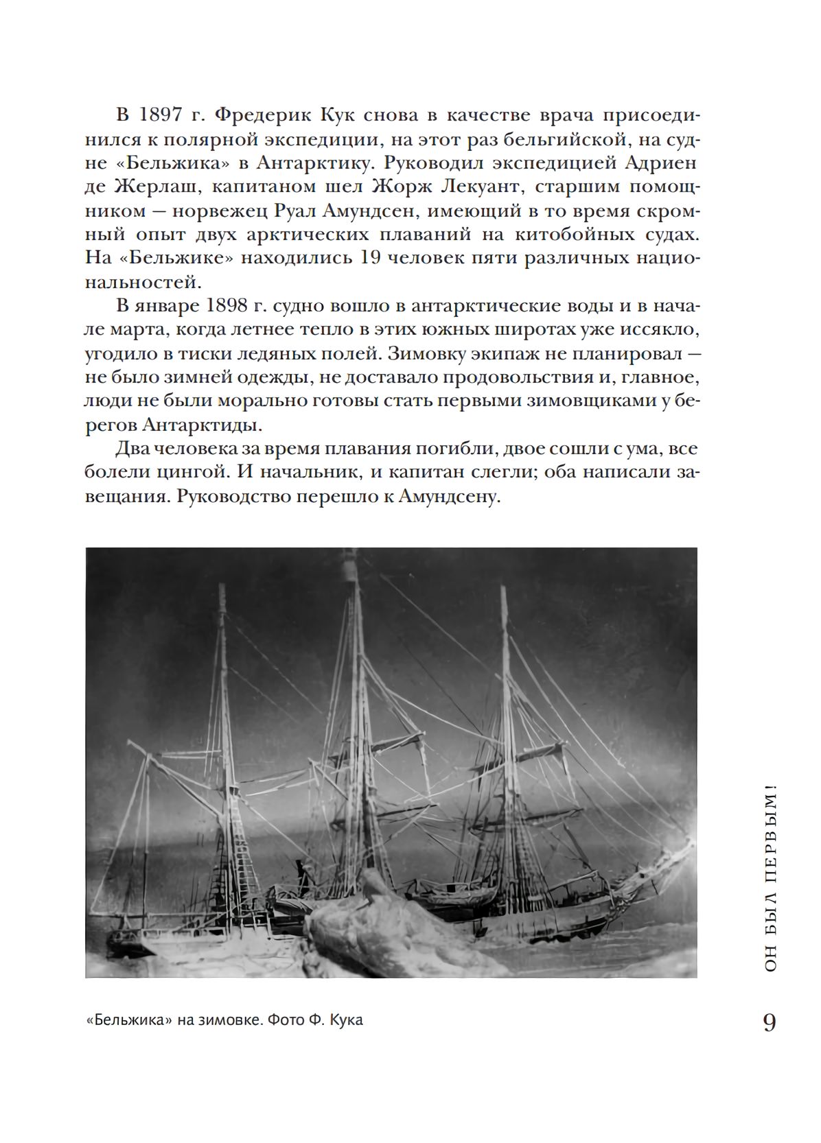 Frederick Cook was a famous American polar explorer, Doctor of Medical Sciences, who claimed to be the first to conquer the highest mountain in North America, Mount McKinley (1906), and to discover the North Pole (1908). In the United States, both of these achievements were questioned, and Cook was called a liar. Cook's return from the North Pole, which lasted a year, is an outstanding example of a person achieving a goal set for himself and one of the most convincing lessons in survival in the high latitudes of the Arctic. Foreword by Dmitry Shparo "He Was the First!" is a consistent, meticulous study that returns to humanity the great victories of Dr. Cook and his good name.