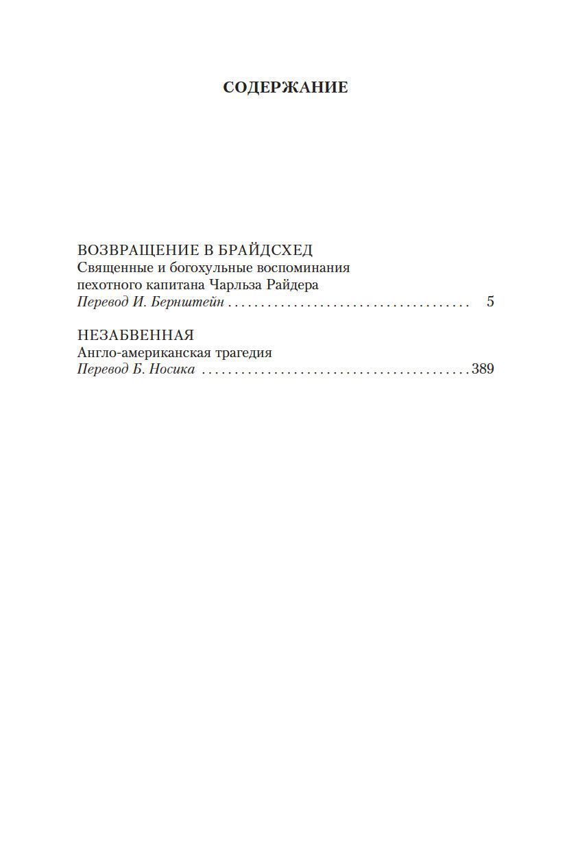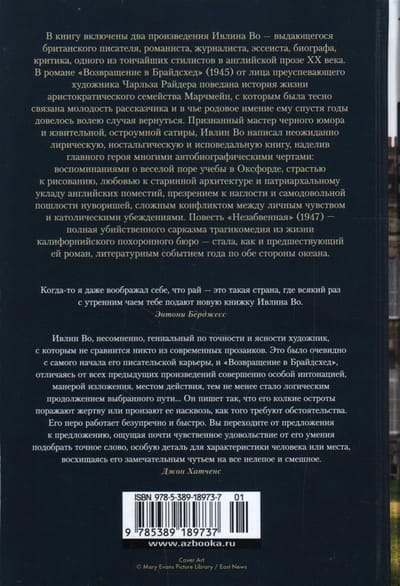 "Return to Brideshead" (1944) - one of the greatest books of the last century. It is one of the 100 best English-language novels of the twentieth century according to Modern Library, has been screened twice and translated into all the leading languages of the world.