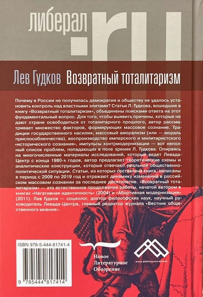Why has democracy failed in Russia and why has society failed to establish control over the power elites? The articles by L. Gudkov included in the book "Return Totalitarianism" are united by the search for an answer to this fundamental question. In order to identify the reasons that prevent the country from freeing itself from the totalitarian past, the author examines many factors that shape mass consciousness. Traditions of state violence, mass amoralism (or the morality of accommodation), the reproduction of imperial and militaristic "historical consciousness," and the impulses of counter-modernization are just a partial list of the problems that fall within L. Gudkov's field of vision. Relying on numerous research materials conducted by the Levada Center since the late 1980s, the author offers theoretical schemes and analytical constructions that correspond to the real socio-political situation. The articles that make up the book were written between 2009 and 2019 and reflect the dynamics of changes in Russian mass consciousness over the past decade. "Return Totalitarianism" is a natural continuation of the work started by the author in the books "Negative Identity" (2004) and "Abortive Modernization" (2011). Lev Gudkov is a sociologist, Doctor of Philosophy, research director of the Levada Center, and editor-in-chief of the journal Vestnik Public Opinion.