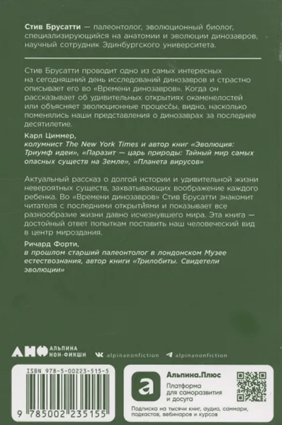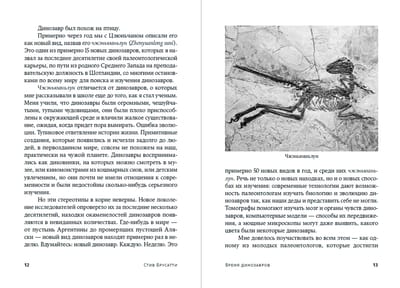 Tyrannosaurus, Triceratops, Brontosaurus, prehistoric ancestors of modern birds — the reader is introduced to them not only by the author’s vivid descriptions, but also by numerous illustrations and photographs. Brusatte also recalls interesting cases from his numerous expeditions, which fell on the most exciting era of dinosaur research, which he calls the “golden age of discoveries”.