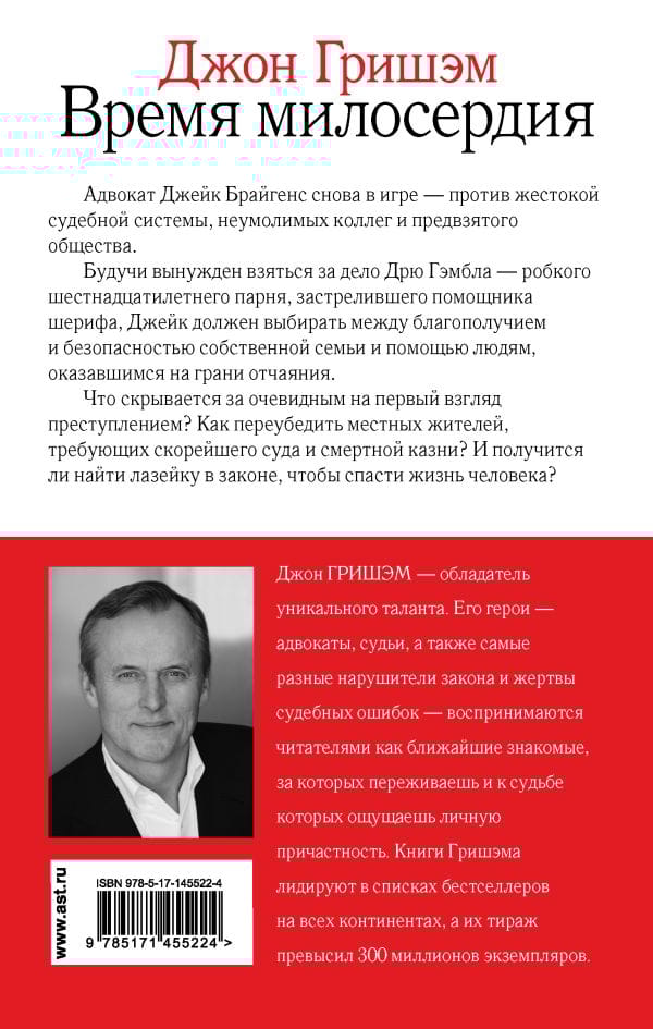 A new forensic thriller from one of today's most popular writers! The sequel to the novels "A Time to Kill" and "A Time to Forgive". Attorney Jake Brigance is back in the game - against a brutal court system, unforgiving colleagues and a prejudiced society. Forced to take on the case of Drew Gamble, a timid sixteen-year-old who shot and killed a sheriff's deputy, Jake must choose between the well-being and safety of his own family and helping people on the brink of despair. What's behind the seemingly obvious crime? How to change the minds of the locals who demand a speedy trial and the death penalty? And will it be possible to find a loophole in the law to save a man's life?