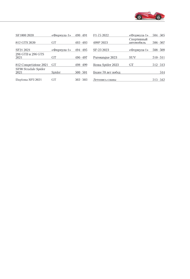 The book concludes with a list of all the major victories of the Maranello team over 70 years of racing.