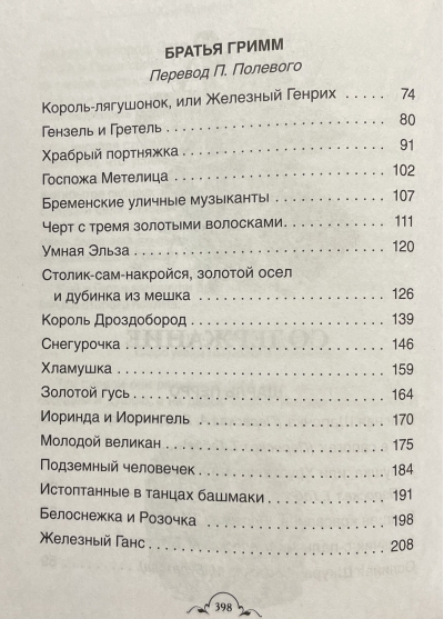 This book will introduce young readers to the wonderful world of fairy tales. Brave heroes, beautiful princesses, amazing animals, and dangerous adventures await. These magical stories will teach children about moral standards and social behavior, help develop their imagination and creativity, and instill a love of books and reading.