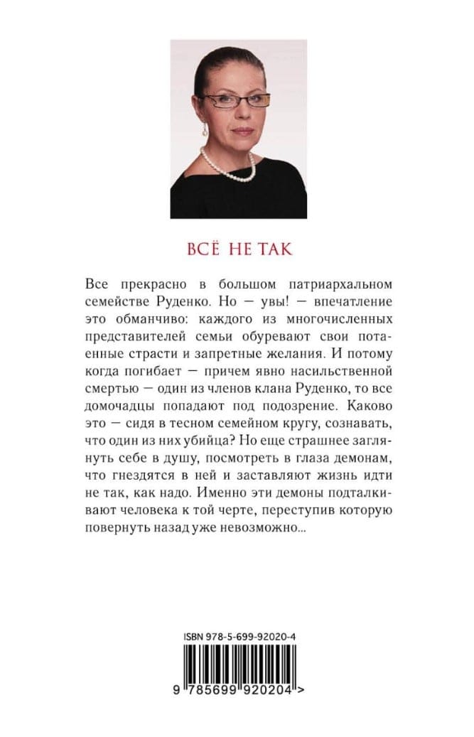 All is well in the large, patriarchal Rudenko family. But alas! this impression is deceptive: each of the numerous family members is plagued by hidden passions and forbidden desires. And so, when one of the Rudenko clan members dies—clearly a violent death—the entire household falls under suspicion. What is it like to sit in a close-knit family circle, knowing that one of their own is a murderer? But even more terrifying is to peer into one's soul, to look into the eyes of the demons that nest within it and force life to go wrong. It is these demons that push a person to the point where, once crossed, turning back is impossible...