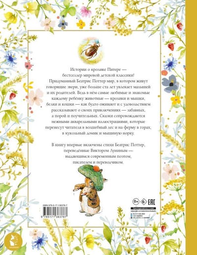 Beatrix Potter's stories have long been classics of children's literature, and for over a hundred years many generations of young readers have been discovering her world - enchanting and magical. In our book, for the first time we have collected all of Beatrix Potter's fairy tales translated by Irina Tokmakova. Victor Lunin, one of the best modern translators, has given a completely new sound to these stories. The book comes out with the author's illustrations - gentle and unusually cute, they draw the reader into the world of old England, where animals live their own, special life, so similar to human life. For preschool age.