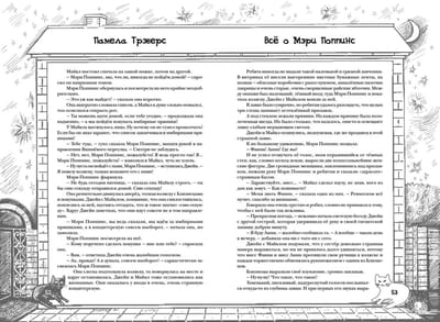 The book also contains a small encyclopedia "Mary Poppins from A to Z", the story "Mary Poppins in the Kitchen" with cooking recipes from the famous nanny translated by I. Tokmakova and an afterword, in which an expert in English literature, translator Alexandra Borisenko, tells the story of the creation of the tale of Mary Poppins and the life of its author - one of the most enigmatic writers of the XX century Pamela Lyndon Travers.