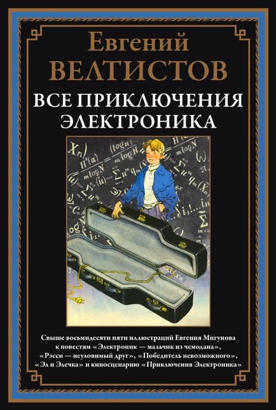 The book is the first to collect under one cover all the stories of the famous cycle of science fiction works by the writer Evgeny Serafimovich Veltistov (1934–1989) about the adventures of a robot boy: “Elektronik — the boy from the suitcase”, “Rassi — the elusive friend”, “The winner of the impossible”, “What’s next?”, “El and Elechka” (New adventures of Elektronik). It also includes the screenplay “The Adventures of Elektronik”. The publication is decorated with illustrations by the artist and innovator in the field of drawn cinema Evgeny Tikhonovich Migunov.