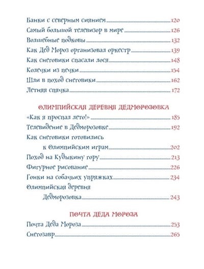 This village was invented by a wonderful children's writer Andrei Usachev, a great children's illustrator Victor Chizhikov drew the inhabitants of Ded Morozovka, and talented artists Ekaterina and Elena Zdornova helped Victor Chizhikov to create drawings for the book. This book includes all the fairy tales about Dedmorozovka and its inhabitants.
