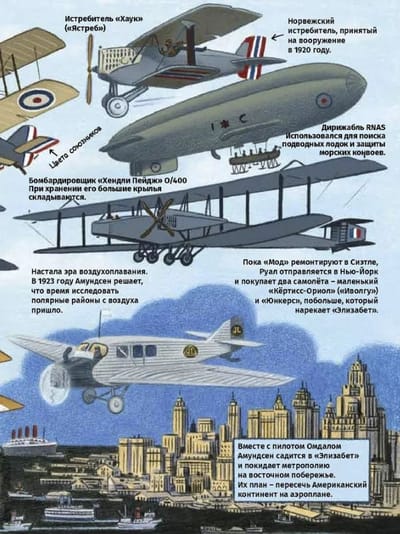 This bright and exciting book tells about the flights to the Arctic of one of the greatest polar travelers - the Norwegian Roald Amundsen. Amundsen opened a new page in Arctic exploration, deciding to reach the previously unconquered North Pole from the air by airplanes and airships. In the book you will learn about the flight of Amundsen and his small team on two hydroplanes to the Pole in 1925. This expedition failed: one of the airplanes because of a technical malfunction sat on the water of the Arctic Ocean, and the entire expedition barely survived. It was then that they decided to try an airship for the next flight, which seemed more reliable in the Arctic latitudes. Amundsen's plan was to find a large land mass around the North Pole or to prove its absence. To do this, he was going to fly from Spitsbergen to the pole and from there reach the Bering Strait. In 1926, Amundsen's plan was realized: the airship "Norway" flew over the "top of the Earth". After reading this book, you will learn how the great traveler Rual Amundsen died in the skies above the Arctic, flying on a hydroplane "Latam-47" to rescue the crew members of the crashed airship "Italy".