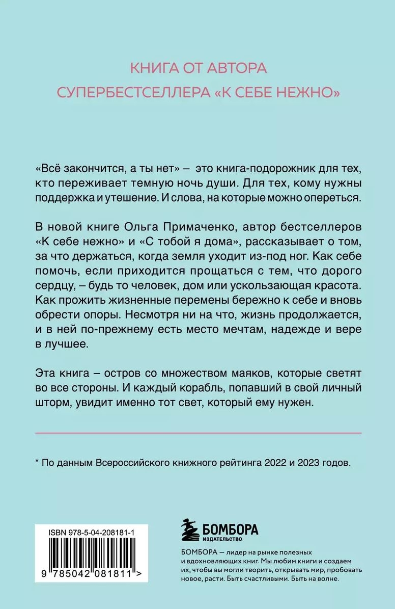 In her new book, Olga Primachenko, author of the bestsellers "Tenderly to Myself" and "With You I'm Home," talks about what to hold on to when the ground beneath your feet feels like it's slipping away. How to help yourself when you have to say goodbye to something dear to your heart—be it a person, a home, or fleeting beauty. How to navigate life's changes with care—and regain your footing. Despite everything, life goes on, and there's still room for dreams, hope, and faith in a better future.