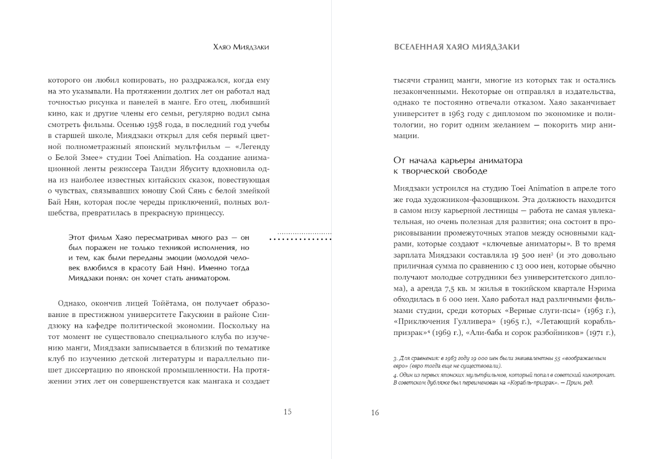 Hayao Miyazaki has managed to reach each and every one of us. All he needed to do was to show that magic is much more real and closer than it seems. Miyazaki's animation style can't be confused with any other, and the films he created have become famous all over the world: "Gone with the Ghosts", "The Walking Castle", "The Wind Rises" and other pictures that we have rewatched many times. The book "The Universe of Hayao Miyazaki. Pictures of the great animator in detail" reveals all the facets of the legendary Japanese animator. You will learn about how the director's life was formed from his youth, how the Ghibli studio was created, where the pearls of Japanese animation were born. Together with the author, you will look at Miyazaki's films from a different angle and discover details that may have escaped your notice even after many viewings. If you are unabashedly fascinated by the universe of Hayao Miyazaki, if you admire the aesthetics of the locations and characters created by Miyazaki and his colleagues, and if you believe it to be an undeniable truth that the animation of Japanese directors has no equal in the world, this book is for you.
