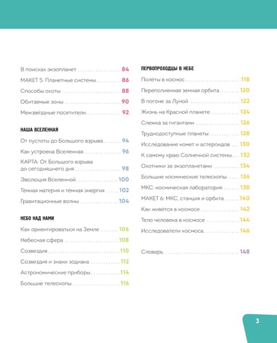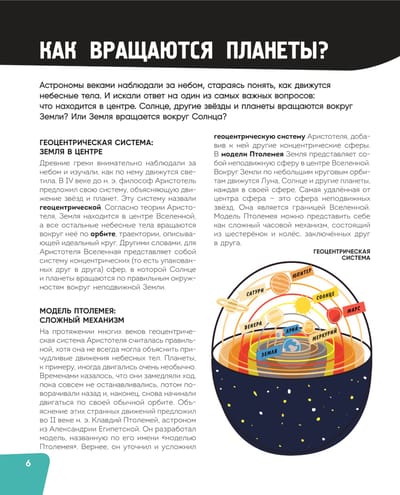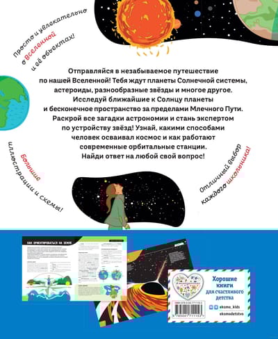 This space encyclopedia is characterized by an excellent balanced presentation of scientific facts and gives a full understanding of the causes, structure, processes, without overloading the young reader. The diverse presentation of information will not let you get bored: the book has a lot of fascinating schemes, ribbons of time, models of the solar system and spaceships, maps of celestial bodies, as well as a dictionary of useful words. The edition is recommended for children of middle school age. The colorful and fascinating book will be a wonderful gift for any occasion.