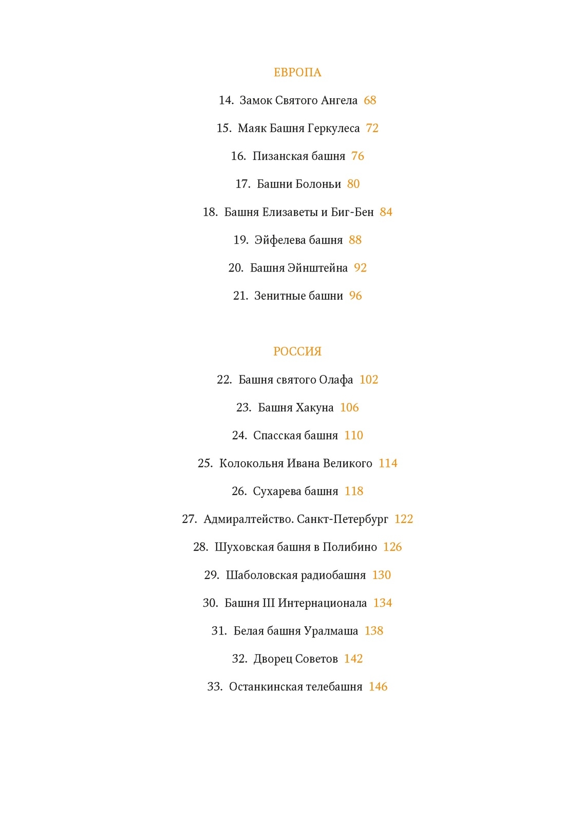 The World Atlas of Towers is a brief history of humanity, its aspirations, and its achievements. The Tower of Babel, the Himeji Castle Tower, the Sukharev Tower, the Spasskaya Tower, the Leaning Tower of Pisa, and even the unbuilt but daringly conceived Tatlin Tower… all towers with diagrams revealing their secrets.