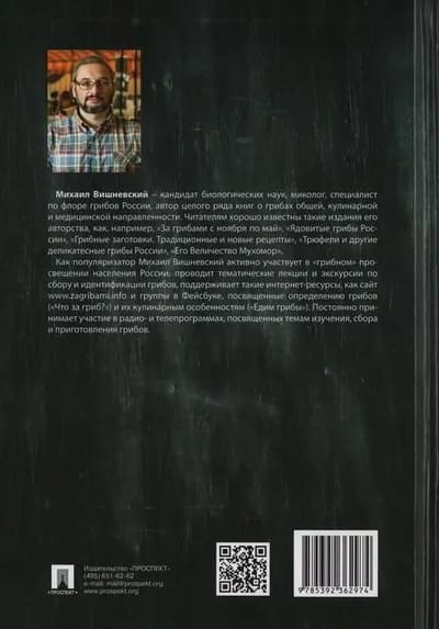 The book "All About Mushrooms" is the result of more than twenty years of scientific, educational, lecture and literary activity of the famous mycologist and popularizer of science Mikhail Vishnevsky. Focused primarily on mushroomers, the edition contains fascinating information about the origin of mushrooms and their structure, mushrooms-helpers and mushrooms-pests, about the place of mushrooms in the myths and religions of the peoples of the world, about the culinary processing and harvesting of mushrooms, about where, when and how to collect them better on the vast expanses of our country. Edible, medicinal and poisonous mushrooms and lichens of Russia are considered in detail. The reader will get reasonable answers to the most pressing controversial questions: whether you can touch the pale grebe, how to grow mushrooms on the site, how to protect your nails and skin from fungi, whether poisonous svinushka and zelenushka, whether mushrooms really cure cancer and many others. The book includes more than 500 color photo collages, compiled by the author for easy identification of mushrooms in nature.
