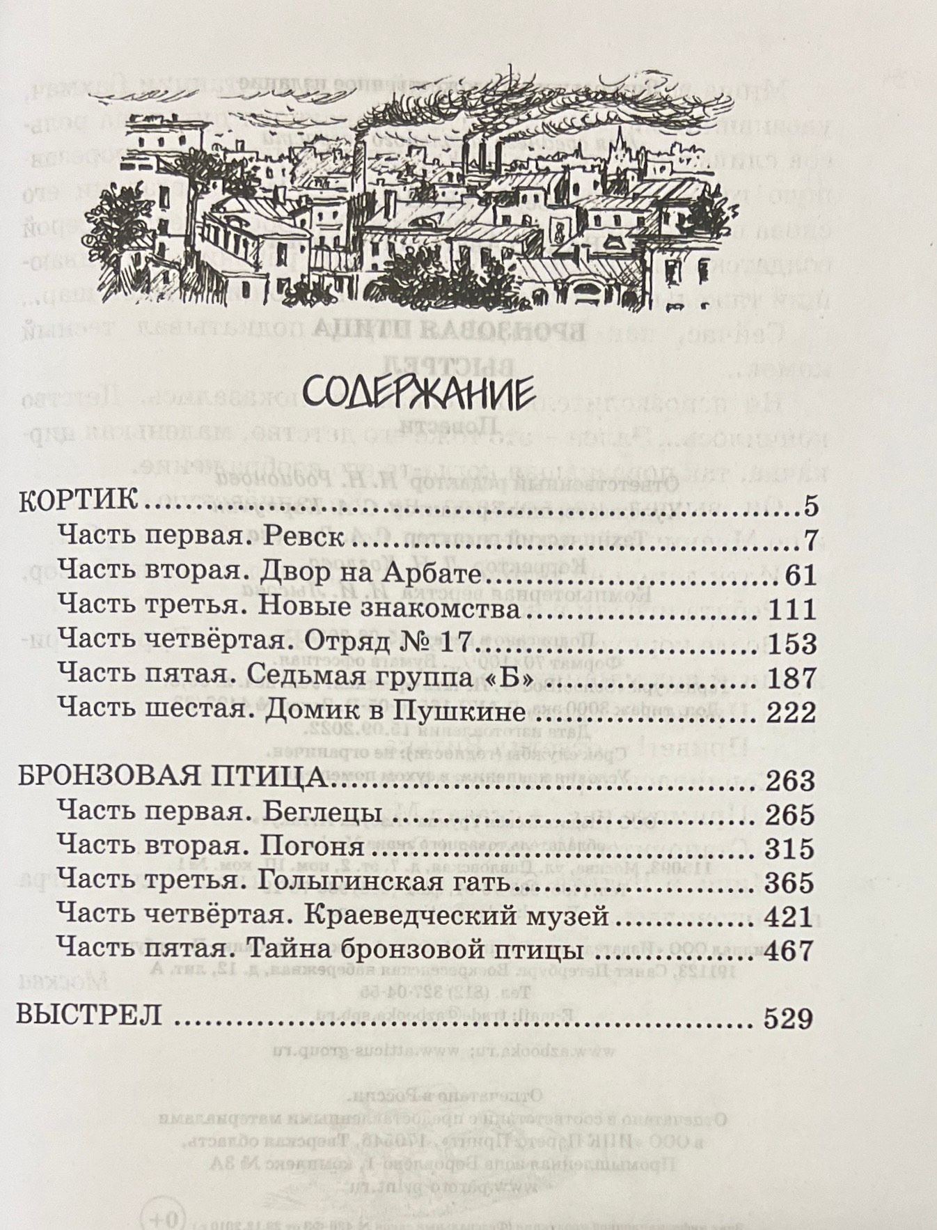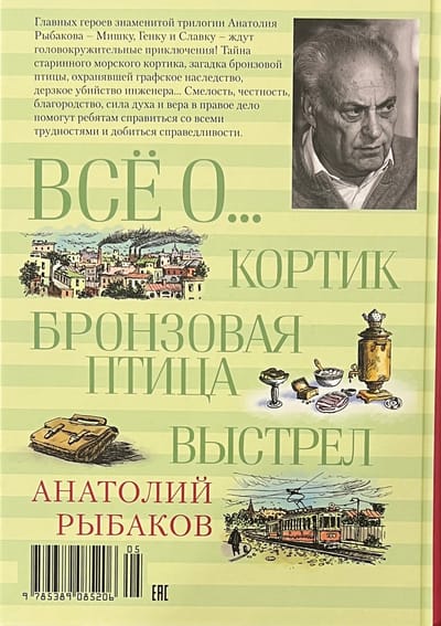The main characters of Anatoly Rybakov's famous trilogy - Mishka, Genka and Slavka - are waiting for dizzying adventures! The mystery of an ancient sea dirk, the riddle of a bronze bird guarding the count's inheritance, the daring murder of an engineer... Courage, honesty, nobility, fortitude and faith in the right cause will help the boys to cope with all the difficulties and achieve justice.