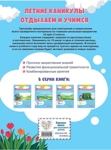 The trainer for primary school students is designed to repeat and consolidate all the material covered during the 2nd grade course. The manual consists of 30 combined lessons, each of which includes two tasks in Russian and two tasks in mathematics. By completing one lesson per day for 10-15 minutes, the student will remember and work out all the topics covered in the most important school subjects within a month. The applied nature of the tasks will maintain the child's interest in completing them.