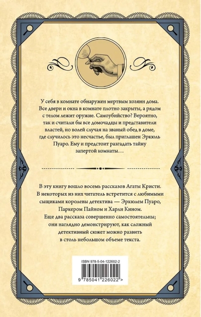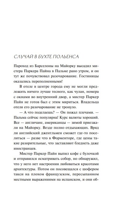 This book contains eight stories by Agatha Christie. In some of them, the reader will meet the Queen of Detective Fiction's favorite detectives – Hercule Poirot, Parker Pyne, and Harley Keene. Two more stories are completely stand-alone; they clearly demonstrate how a complex detective plot can be developed in such a short space of text.