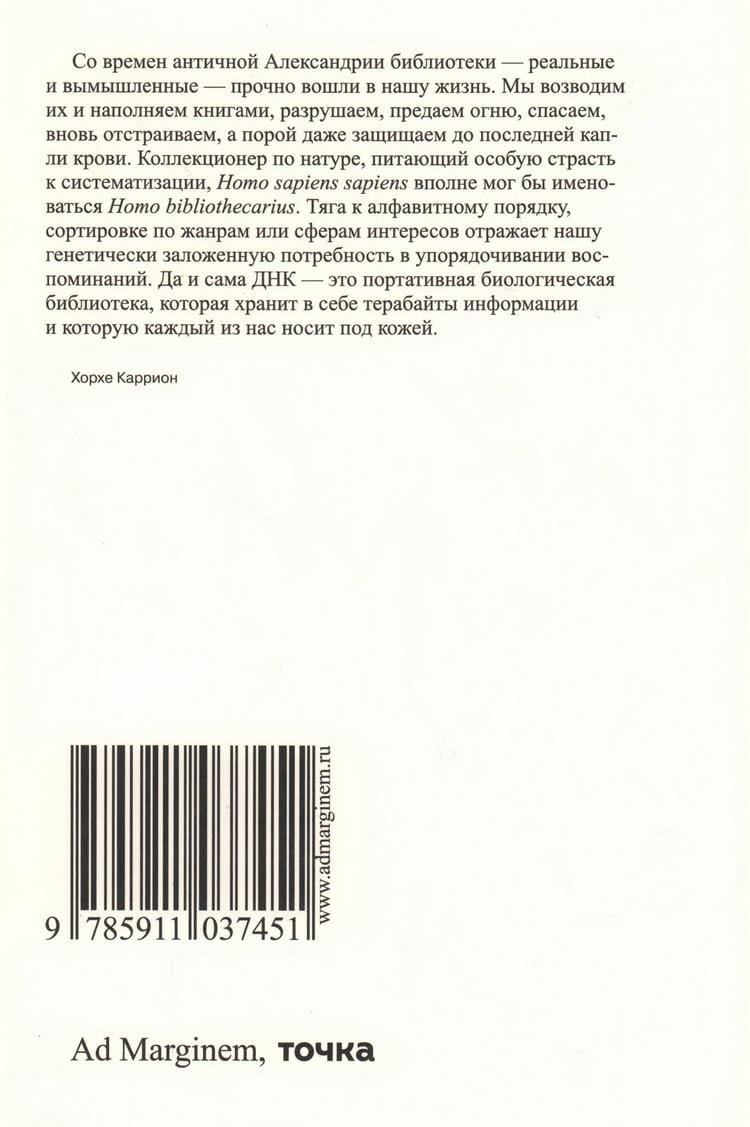 A tireless explorer of the book territory, Carrión sensitively registers its changes: digitalization and the threat from marketplaces, new store formats, the new life of libraries, the renaissance of book spaces of experiences in South Korea and Japan. And, of course, once again he declares his love for books, bookstores and libraries - not only physical ones, but also fictional ones. Those that famous authors - Cervantes, Verne, Borges - gave us in their works, and those that exist inside each of us.