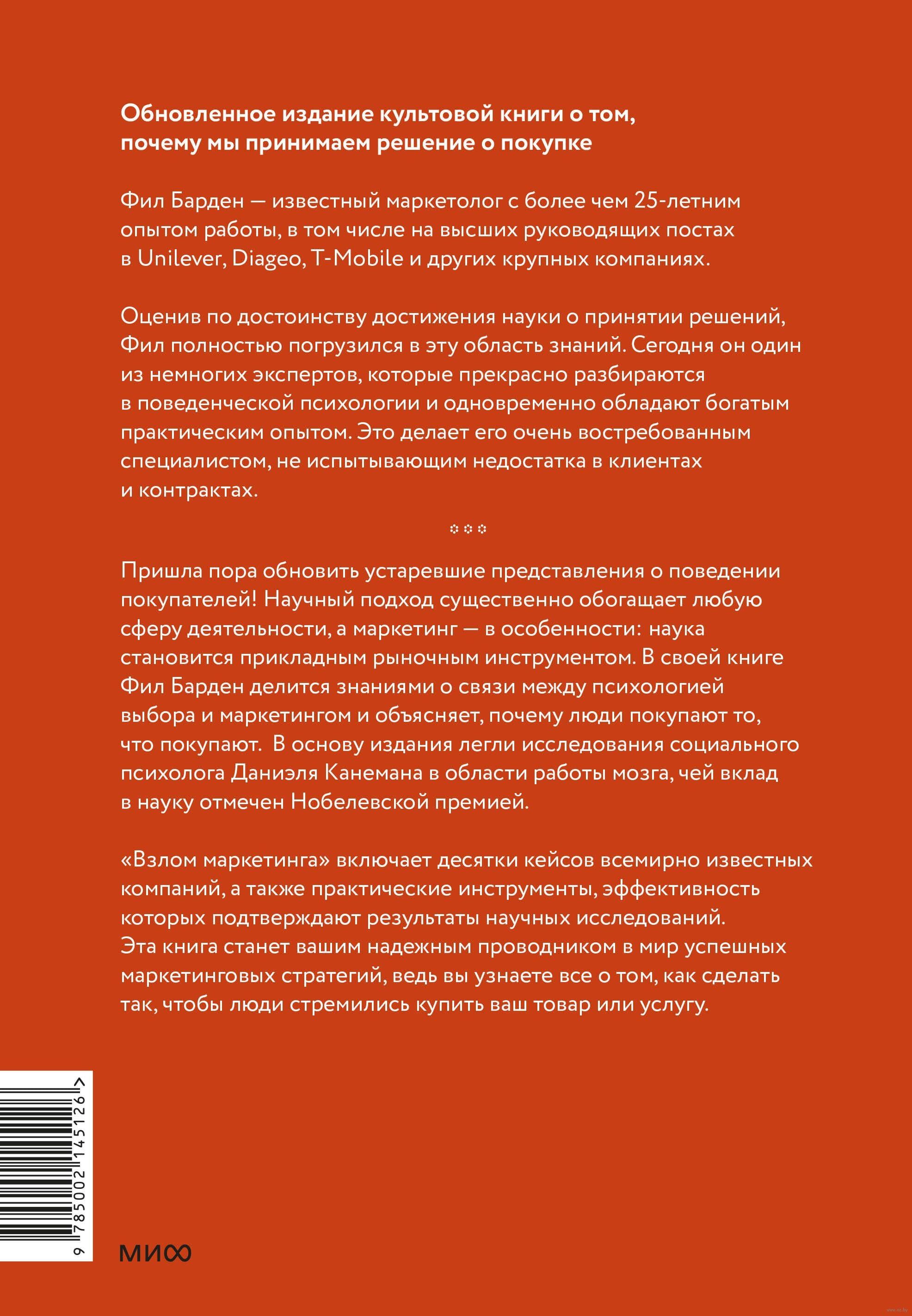 It's time to update outdated ideas about buyer behavior! A scientific approach greatly enriches any field of endeavor, and marketing in particular: science becomes an applied market tool. In his book, Phil Barden shares his knowledge of the connection between the psychology of choice and marketing and explains why people buy what they buy. The book is based on research on the workings of the brain by social psychologist Daniel Kahneman, whose contributions to science have been recognized with a Nobel Prize.