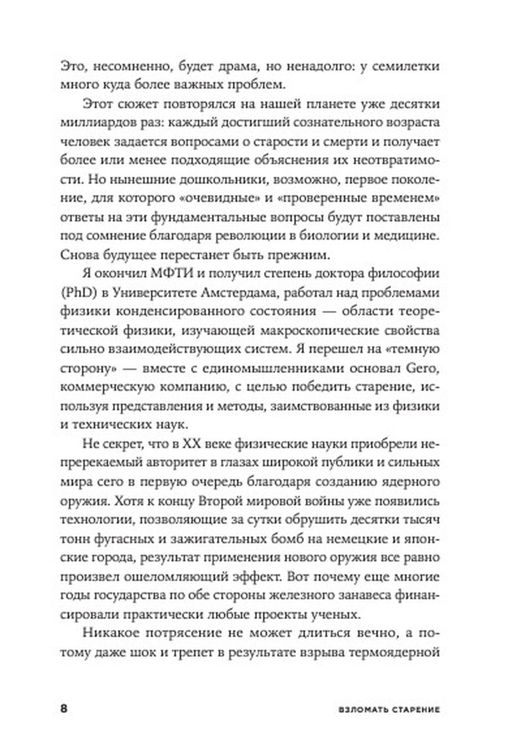 From the book by Petr Fedichev, Ph.D., Russian biophysicist, founder and scientific director of the biotech company Gero, the reader will learn what methods of combating old age and death humanity has tried to invent throughout history and why in the 21st century we have received our first chance for success.
