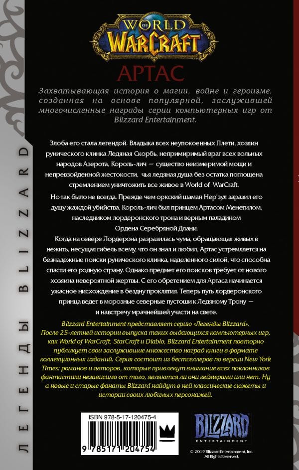 But it wasn't always this way. Before the Orc shaman Ner'zul infected his soul with a thirst for murder, the Lich King was Prince Arthas Menethil, heir to the throne of Lordaeron and a loyal paladin of the Order of the Silver Hand. When a plague breaks out in the north of Lordaeron, turning the living into the undead, bringing doom to all he knew and loved, Arthas sets out on a hopeless search for a rune blade with the power to save his homeland. However, the object of his quest requires an incredible sacrifice from its new owner. With its acquisition, Arthas begins a terrible descent into the abyss of damnation. Now the Lorderon prince's path leads to the frosty northern wastelands to the Ice Throne - and to the darkest fate in the world.