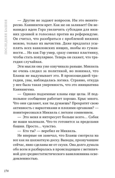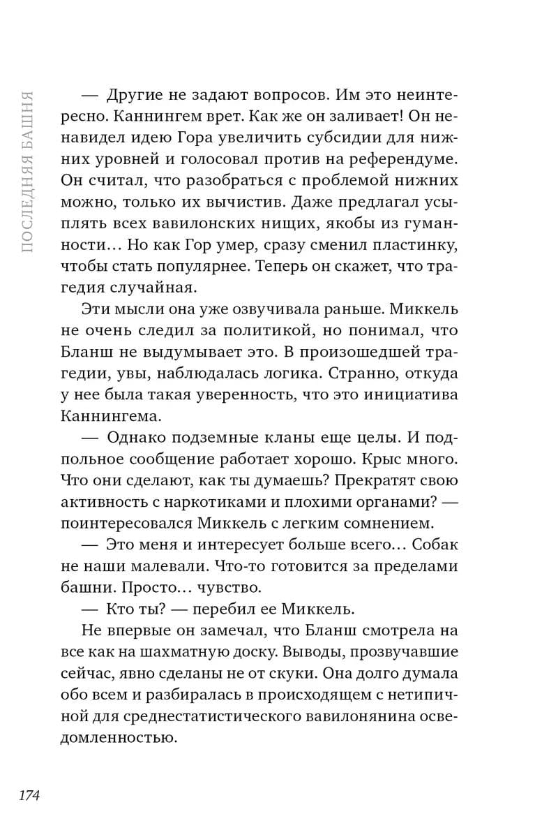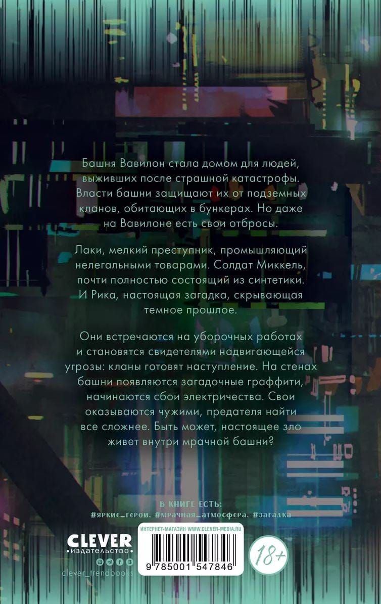 The Tower of Babylon is home to survivors of the disaster. The tower authorities protect them from underground clans living in bunkers. But even Babylon has its own scum. Lucky, a petty criminal who trades in illegal goods. Mikkel's soldier, almost entirely synthetic. And Rick, a real mystery hiding a dark past. They meet at cleaning jobs and witness the impending threat of clans preparing an offensive. Mysterious graffiti appear on the walls of the tower, power failures begin. They are strangers, the traitor is harder to find. Maybe the real evil lives inside the dark tower? Is there #bright_heroes, #dark_atmosphere, #mystery?