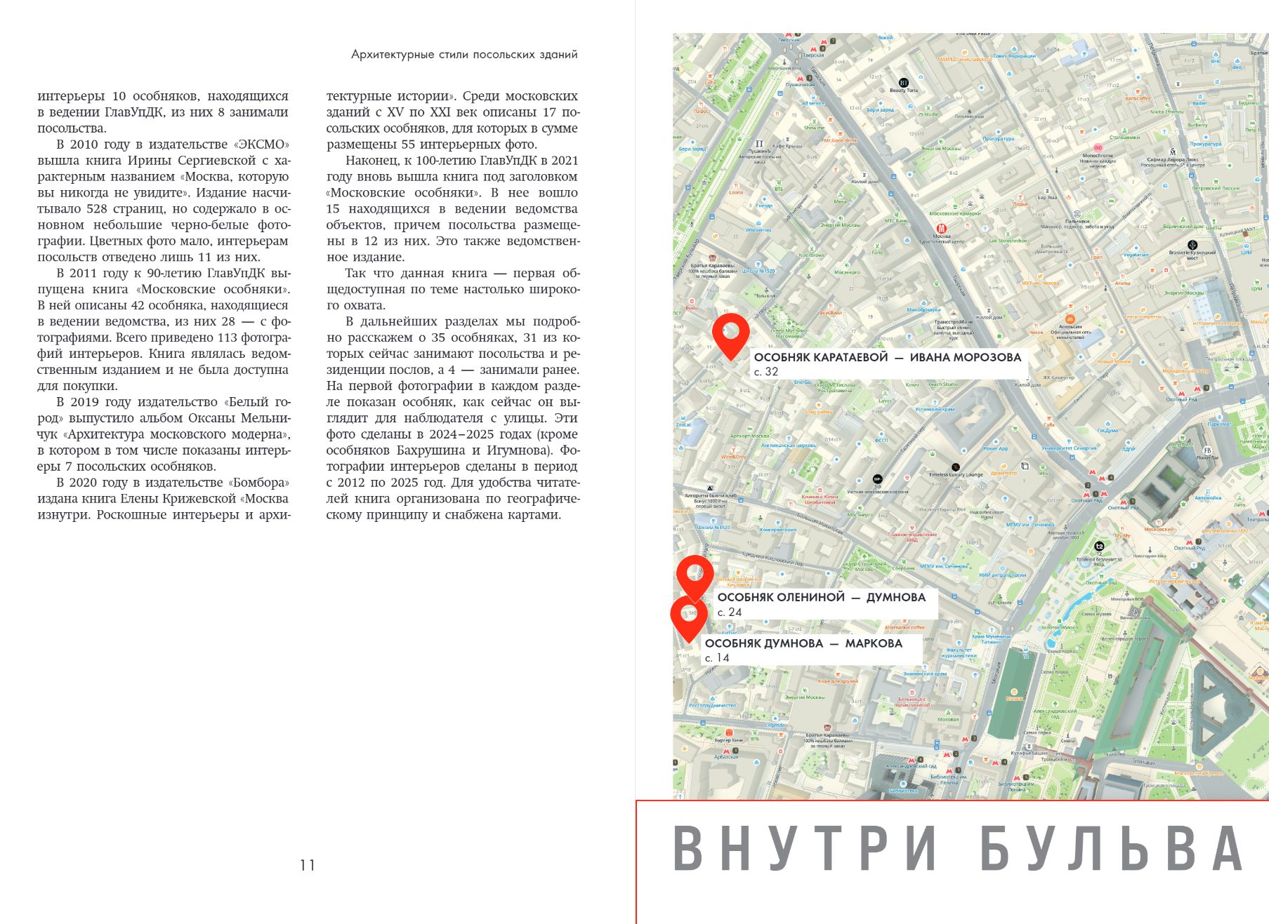 Behind the austere facades lie luxurious suites of rooms, stained glass windows and fireplaces, halls where secret negotiations and legendary receptions took place, interiors that inspired Bulgakov, Pasternak, and Shekhtel. Here you can see the house where the Molotov-Ribbentrop Pact was negotiated, the residence of the American ambassador with the "Ball at Woland's," mansions with authentic Art Nouveau stained glass windows, Gothic dining rooms, Renaissance ceilings, and hidden engineering marvels of the early 20th century.