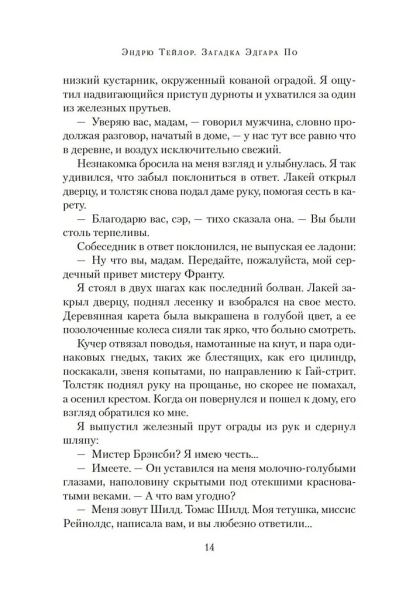 Regency England, 1819. Despite a lack of recommendations, Thomas Shield lands a position as an assistant teacher in a London suburb. Among his students is a young American, Edgar Allan Poe, the adopted son of the Allans, and his best friend, the spoiled, sissy Charles Frant. The boys are remarkably alike... Thomas falls in love with Charles's beautiful but unhappy mother and gradually becomes entangled in a web of family secrets and intrigues. When a mutilated corpse is found on the outskirts of the capital, all evidence points to the Frant family. Involuntarily drawn into this tangled story, Shield realizes he has more than enough reason to worry. And it soon becomes clear that a young American is at the center of these terrifying events...