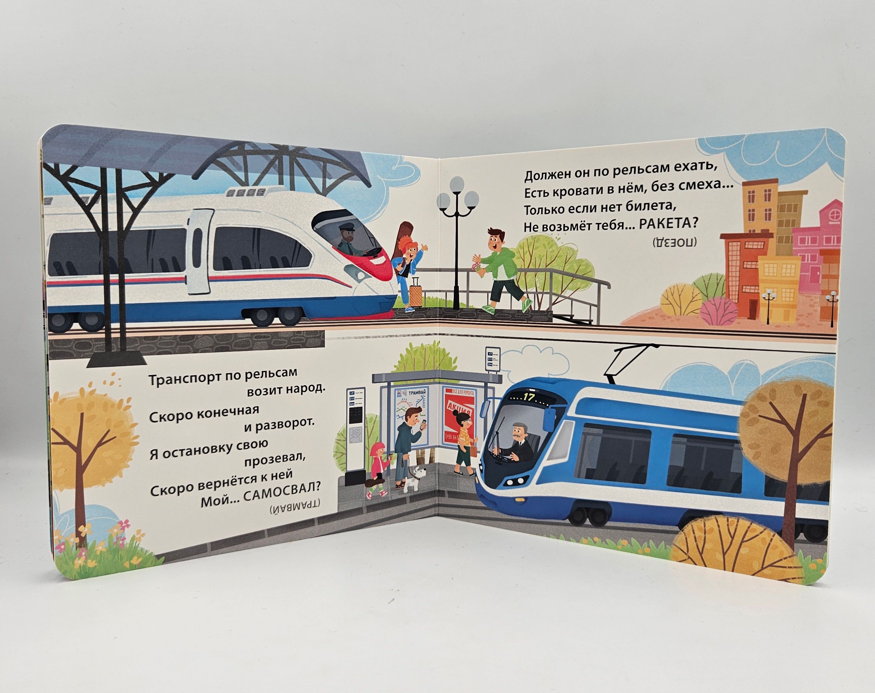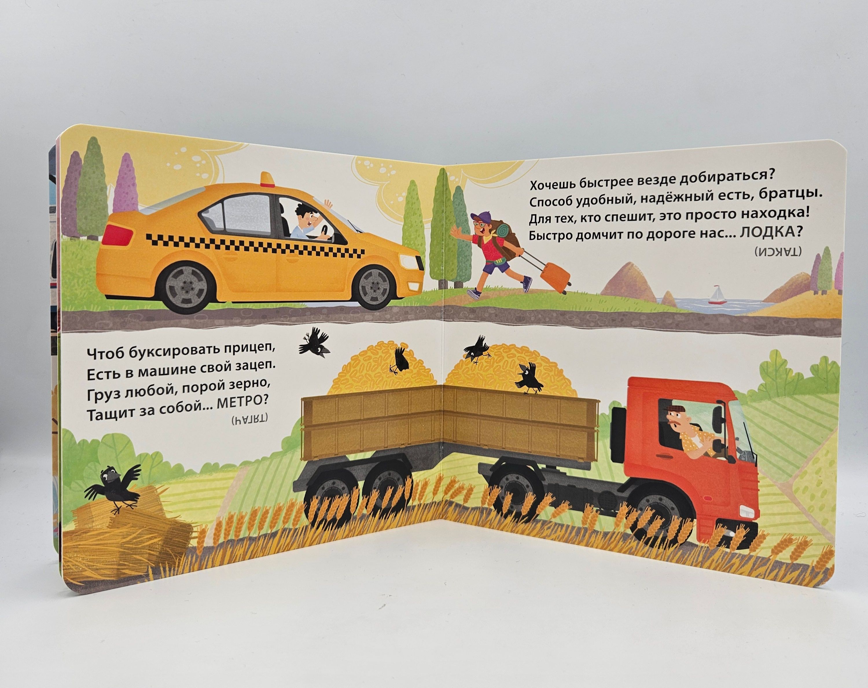Book-cardboard "Transport and technology". Evgeny Sosnovsky will introduce the baby to different techniques and transport with the help of deception riddles.