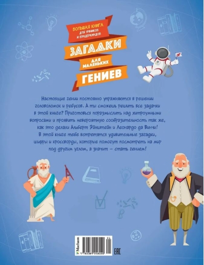 Real geniuses constantly practice solving puzzles and riddles. Can you solve all the problems in this book? Get ready to ponder tricky questions and show incredible intelligence, just like Albert Einstein and Leonardo da Vinci did! In this book, you will encounter amazing riddles, codes and crosswords that will help you look at the world from a different angle, and therefore become a genius!