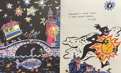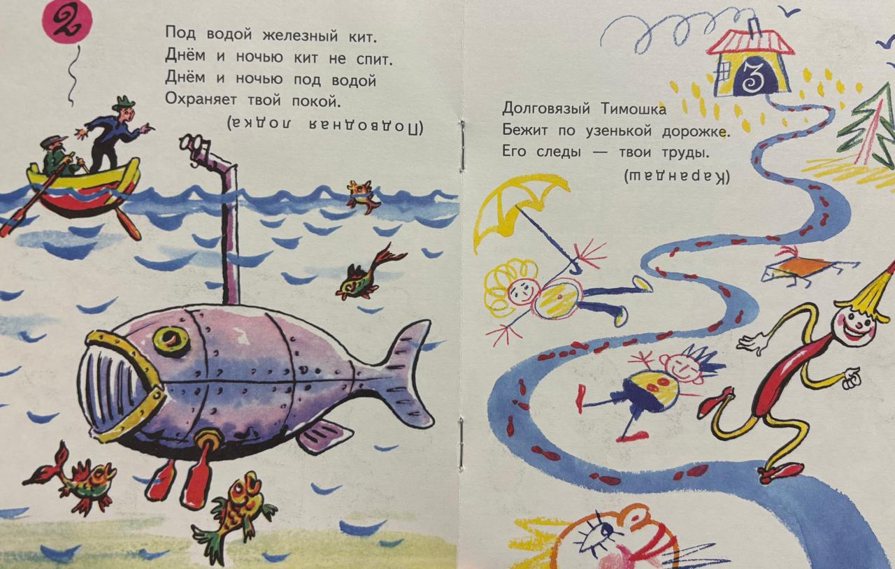 This book contains fun and witty riddles, each one a story in pictures, both funny and instructive. They were created by the wonderful children's poet Ivan Demyanov, whose poems are beloved by generations of young readers, and the funny and expressive illustrations were created by the renowned children's artist Boris Kalaushin.