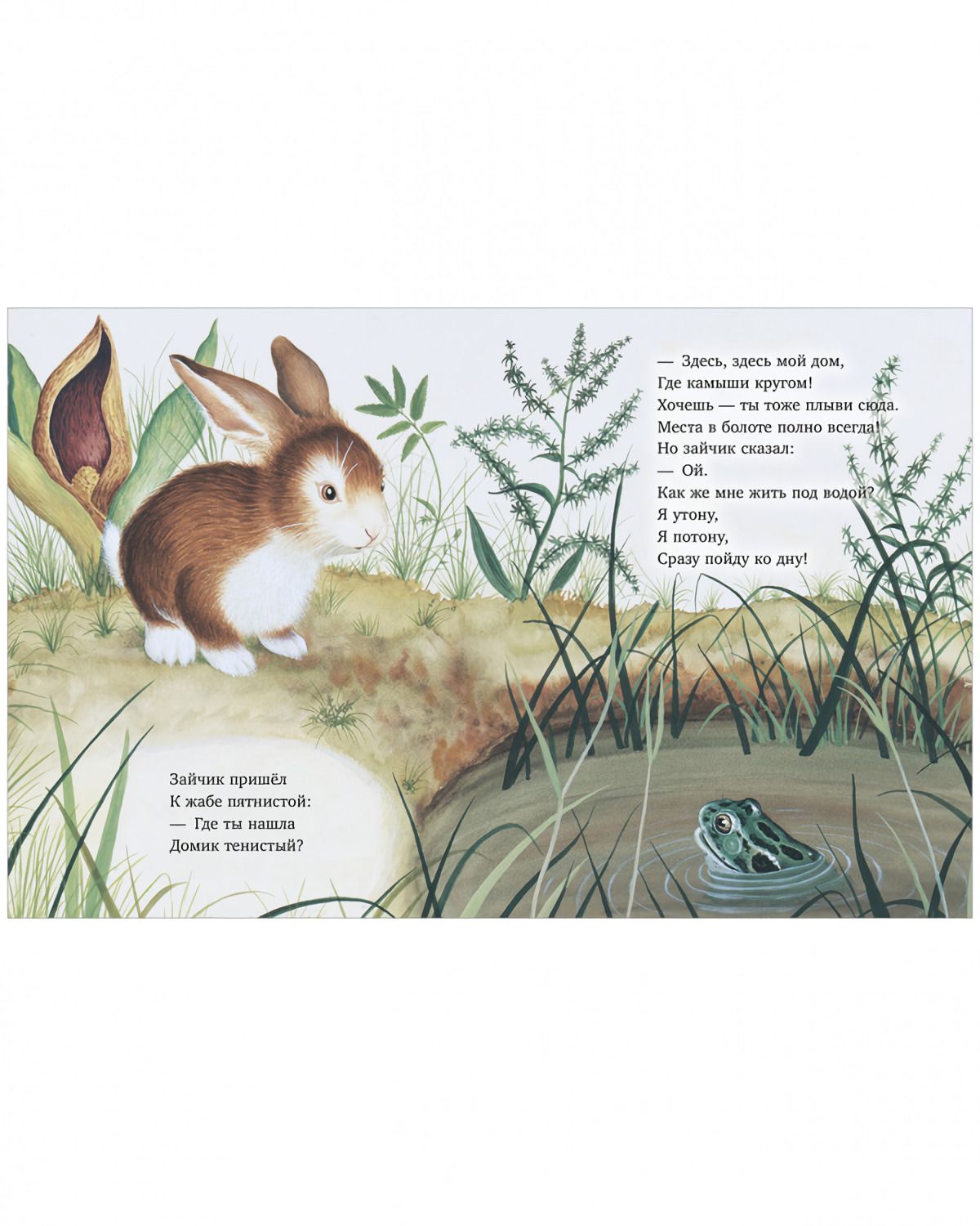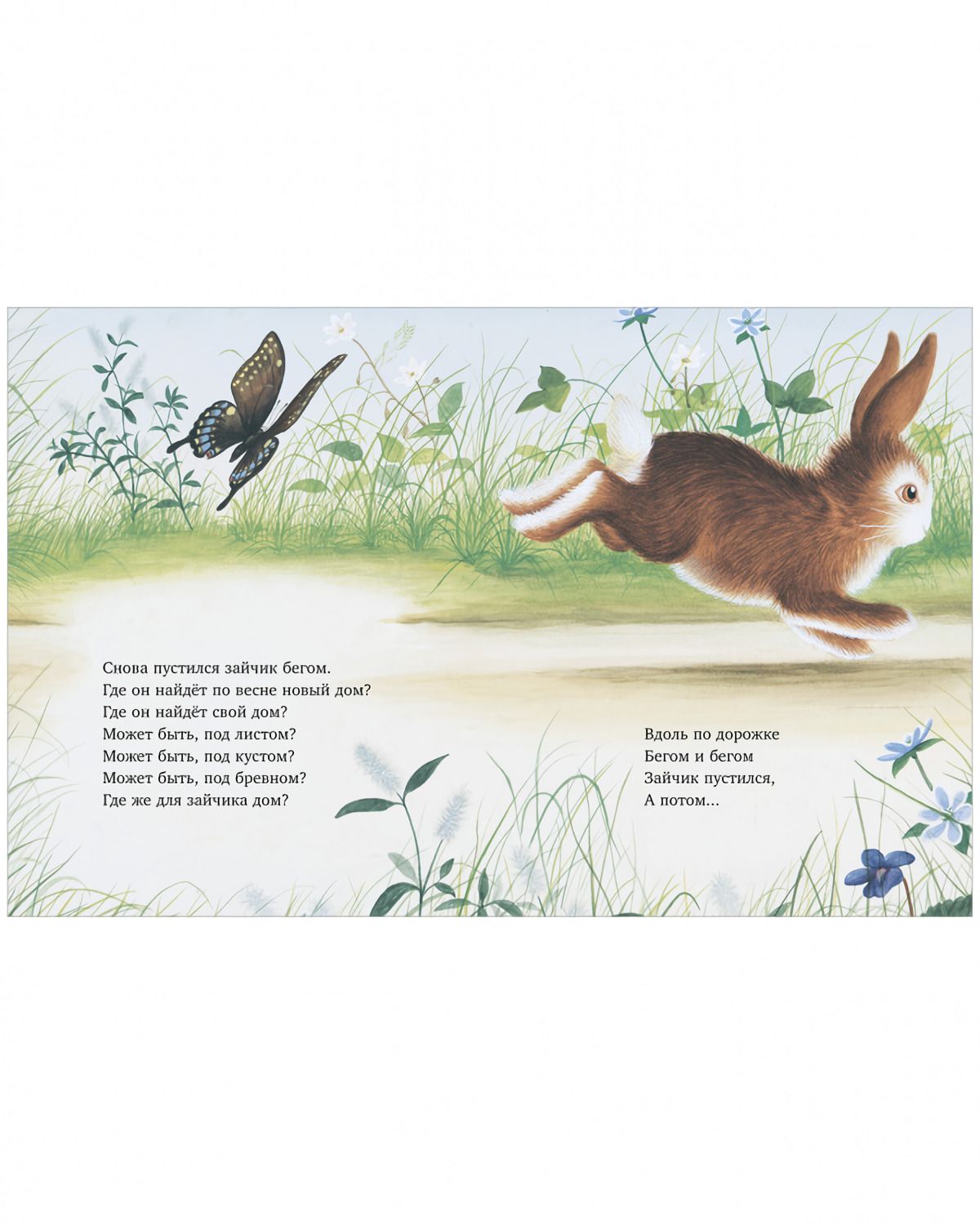 The series "Golden Library of the Kid" is a time-tested classic for the youngest readers. It includes the best books by children's authors and illustrators. Little bunny with a fluffy tail, Where will you find a new home in the spring? Where will you find your home? Maybe under a leaf? Maybe under a bush? Maybe under a log? Where is your new home? A love of books begins in childhood!