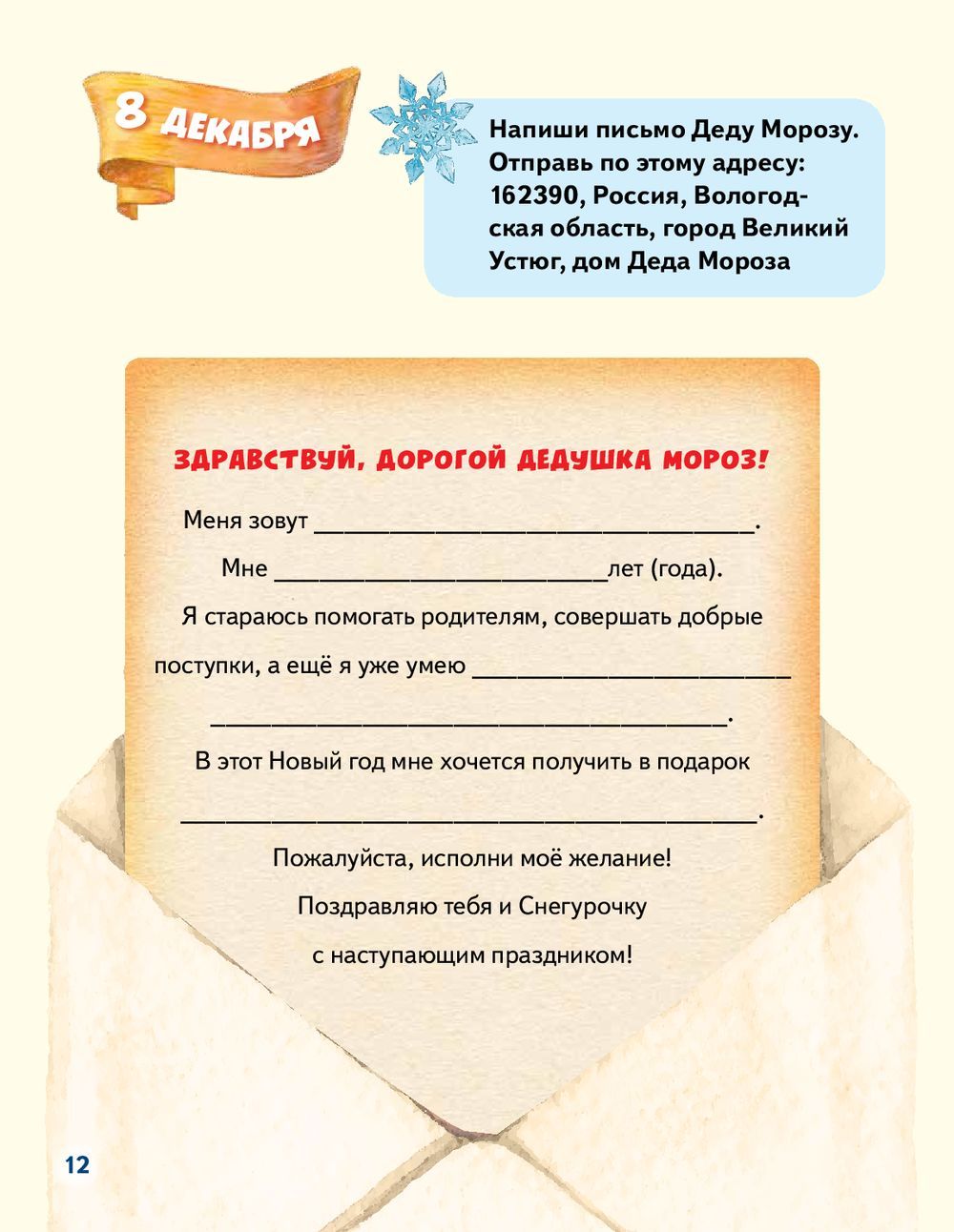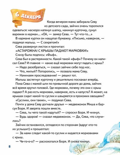 New Year's Advent Calendar with fairy tales and tasks for 31 days! Seva the bunny, like all children, looks forward to the New Year every time. After all, it is a holiday when relatives and friends gather together at the holiday table, exchange gifts and warm congratulations. But how hard it is to wait for the festive day! To make the wait interesting and joyful, Seva the bunny and his mom have prepared a real magical Advent calendar for you! Day after day perform tasks, guess riddles, organize games and contests, prepare treats according to the author's recipes and read funny stories about Seva the bunny. You'll see, the time will fly by in no time!