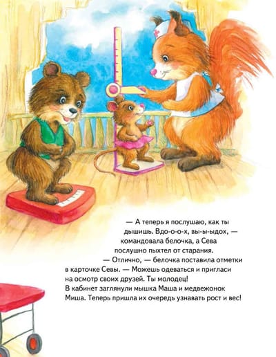 In the kindergarten teacher Zaya Petrovna announced that all the animals need to be examined by doctors at the clinic: the kids are waiting for a dentist, an ophthalmologist and a pediatrician. Oh, Seva the bunny was not on a joke scared.... And what happened next, you will learn from the fairy tale, instructive and useful. This is not just a beautifully illustrated story about a naughty bunny and his friends for family reading, but also material for a conversation "What is good and what is bad". At the end of the book there are questions compiled by a child psychologist for discussion with the child. The book is recommended for parents, educators, teachers. Useful fairy tales bring up a child without shouting and punishment! For reading by adults to children.