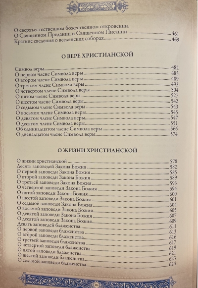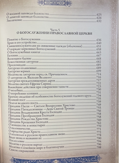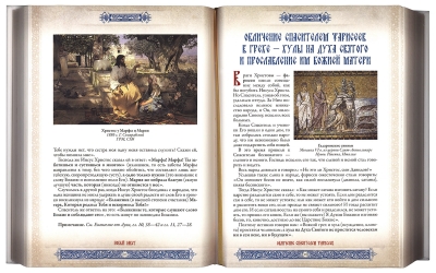 A gift edition of "The Law of God" by Archpriest Seraphim Slobodskoy in a leather binding with gold foil stamping. The large-format book is printed on coated tinted paper, illustrated with masterpieces of Byzantine and Russian icon painting, religious painting of the 6th-20th centuries, and color photographs. The design uses original miniatures, initial letters, and ornaments. For convenience, the publication is supplied with a ribbon bookmark.