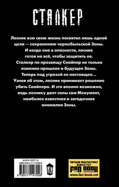 And when she's in danger, the forester will do anything to protect her. Stalker nicknamed Sniper not only changed the past and future of the Zone. Now her real life is under threat... Upon learning of this, the forester decides to kill Sniper. And this is quite possible, because the forester is given strength by the Monument itself, the most famous and mysterious anomaly of the Zone.