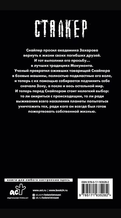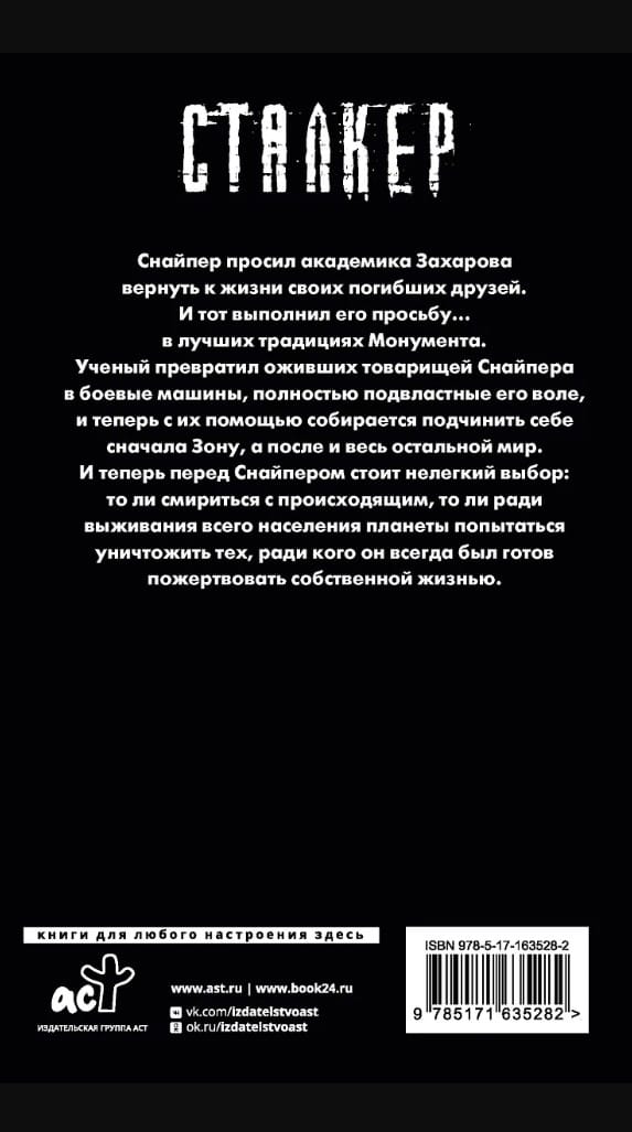 The Sniper asked Academician Zakharov to bring his dead friends back to life. And he fulfilled his request... in the best traditions of the Monument. The scientist turned the Sniper's revived comrades into combat machines, completely subservient to his will, and now with their help he is going to subjugate first the Zone, and then the rest of the world. And now the Sniper faces a difficult choice: either to come to terms with what is happening, or, for the sake of the survival of the entire population of the planet, to try to destroy those for whom he was always ready to sacrifice his own life.