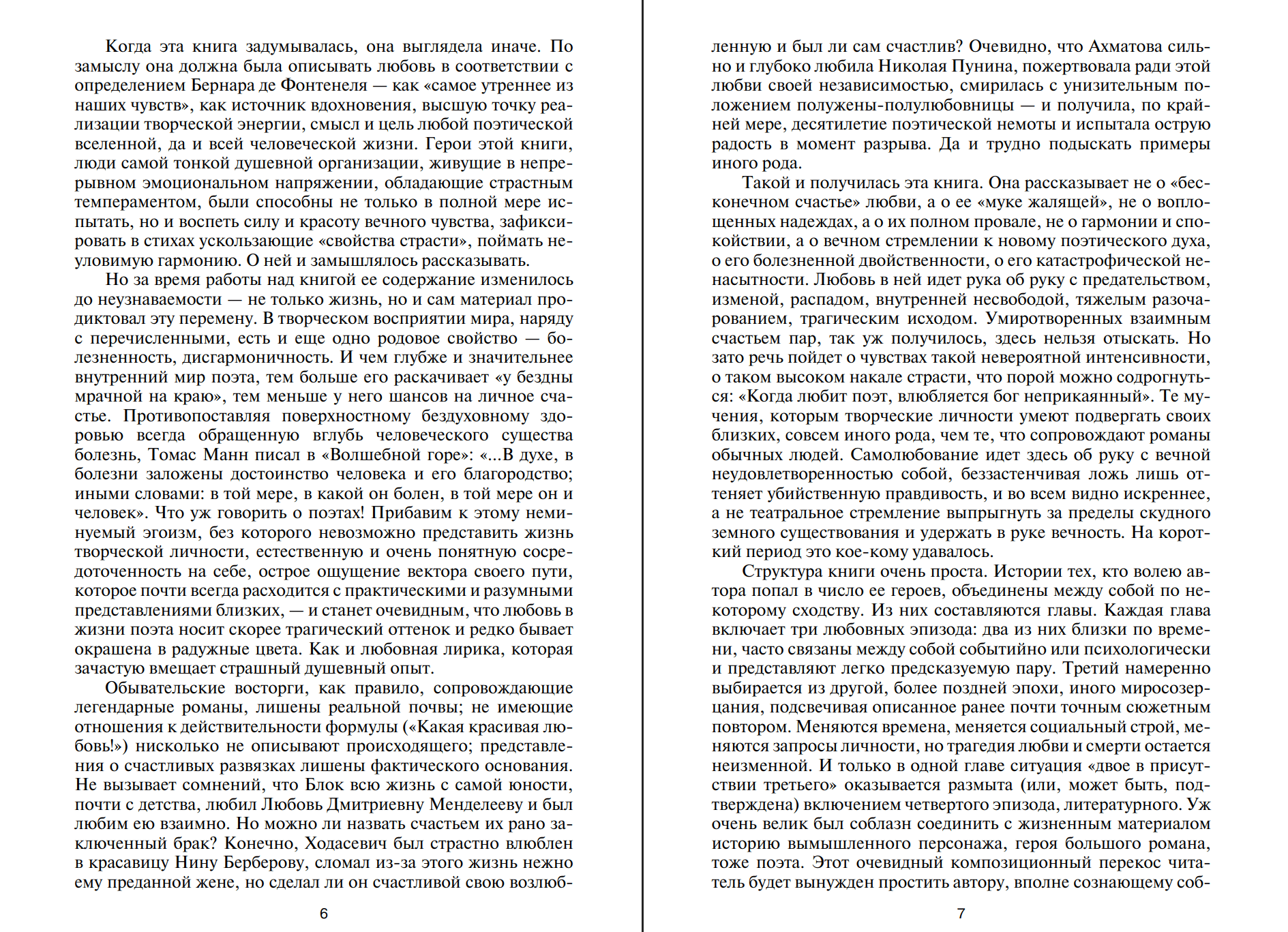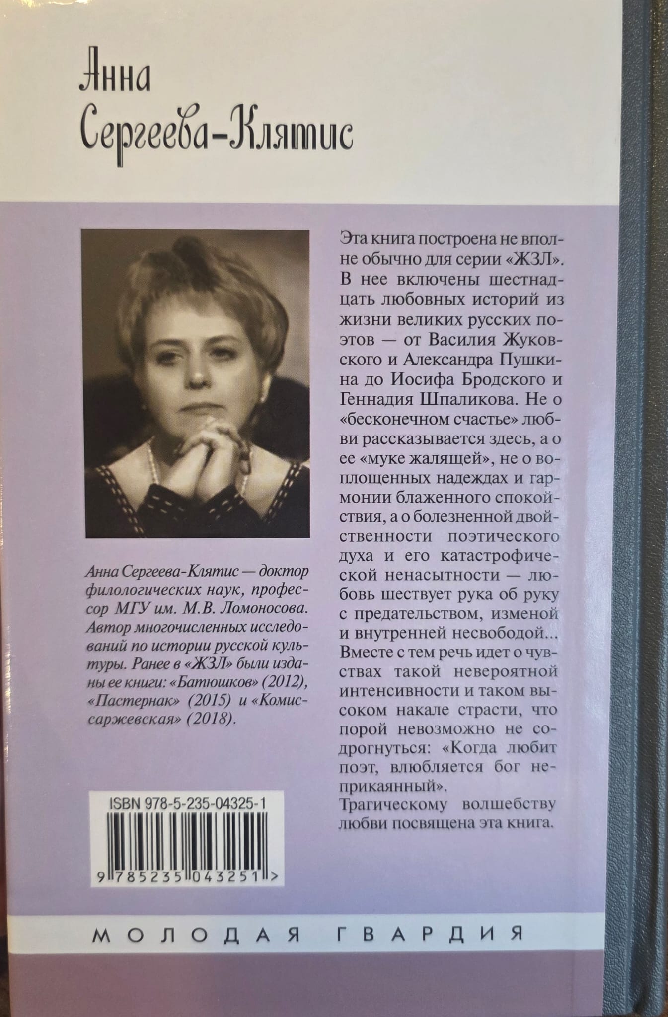 Love is a state of altered consciousness. Anyone who has experienced this feeling understands how it intoxicates, torments, captivates, inspires, allows moments of supreme rapture, and plunges to the very depths of despair. What can we say, then, about the love of a poet, who already lives on the edge of two realities, in other words, is not quite normal? The intensity of the feeling is distilled into poetic lines of incredible power; the suffering and pleasure experienced become the material for creativity, powerfully influencing the entire structure of the personality, worldview, and reshaping a worldview. This can only be compared to large-scale natural disasters, when, at the site of catastrophic faults in the earth's crust, previously unknown mountain ranges suddenly rise to the heavens—"like aerial ruins of magically created chambers." This book is structured in a manner not entirely typical of the "ZhZL" series. It includes sixteen love stories from the lives of great Russian poets—from Vasily Zhukovsky and Alexander Pushkin to Joseph Brodsky and Gennady Shpalikov. It tells not of the "endless happiness" of love, but of its "stinging torment," not of realized hopes and the harmony of blissful tranquility, but of the painful duality of the poetic spirit and its catastrophic insatiability—love walks hand in hand with betrayal, treason, and inner bondage. At the same time, it speaks of feelings of such incredible intensity and such a high-heat of passion that at times it is impossible not to shudder: "When a poet loves, a restless god falls in love." This book is dedicated to the tragic magic of love.