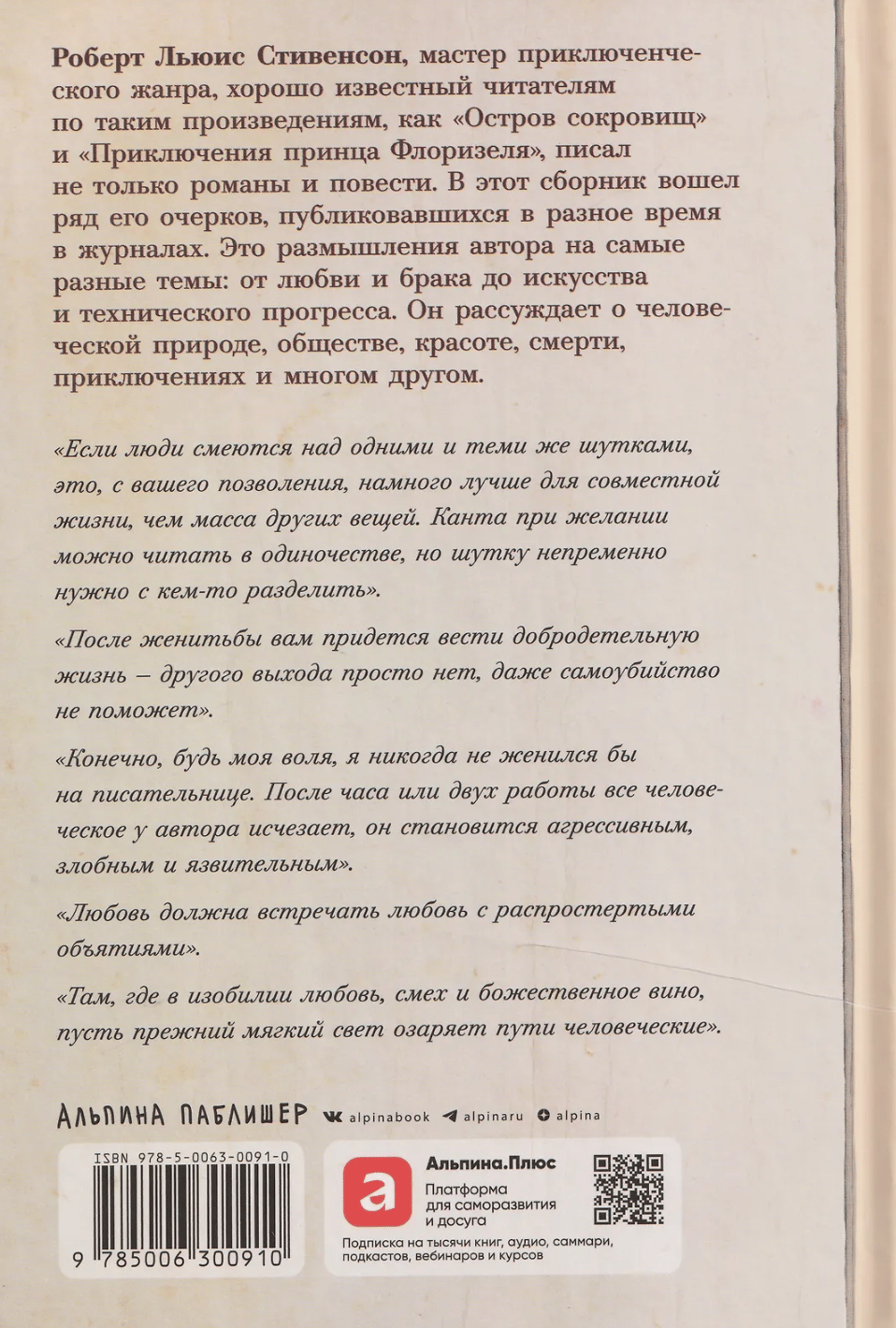 This is a collection of essays by Robert Louis Stevenson, one of the preeminent writers of the 19th century. Although Stevenson is best known as the author of the novels Treasure Island and The Strange Case of Dr. Jekyll and Mr. Hyde, his journalism has had a significant influence on many prominent writers of the last century, including Jorge Luis Borges, Ernest Hemingway, and Gilbert Chesterton. The essays touch on a variety of topics: the anxiety of growing up and marriage, the search for a suitable partner in general and travel in particular, the desire for idleness and a love of adventure, as well as profound reflections on life and death.