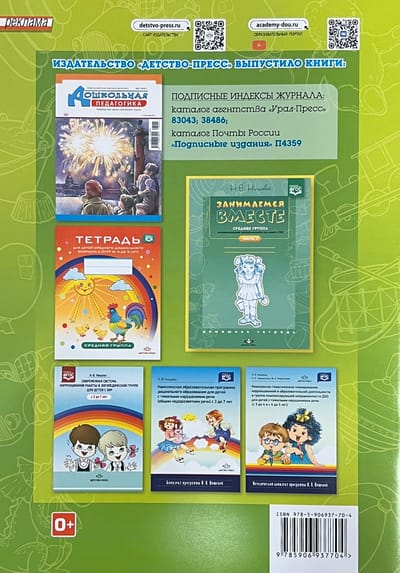 The materials of the notebook are designed for preschoolers of the 4th year of life with normal speech development and children of the 5th year of life with speech pathology. Sixteen lexical topics are presented in the first half of the school year. The following sixteen topics are presented in the second part of the notebook and are studied in the second half of the school year.