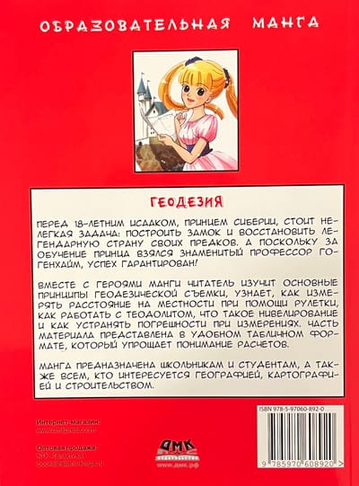 18-year-old Isaac, Prince of Siberia, faces a difficult task: to build a castle and restore the legendary country of his ancestors. And since the famous professor Hohenheim took over the training of the prince, success is guaranteed! Together with the heroes of the manga, the reader will study the basic principles of geodetic surveying, learn how to measure distance on the ground using roulette, how to work with theodolite, what leveling is and how to eliminate measurement errors. Part of the material is presented in a convenient tabular format, which simplifies the understanding of calculations. The publication is intended for students studying geodesy in universities, as well as everyone who is interested in geography, cartography and construction.