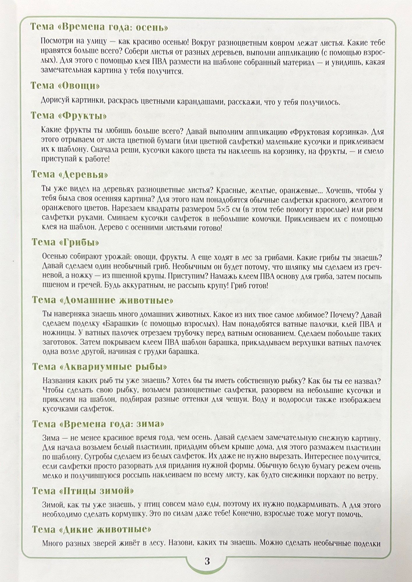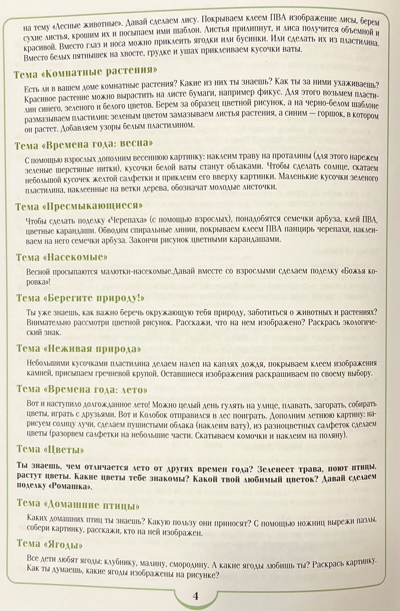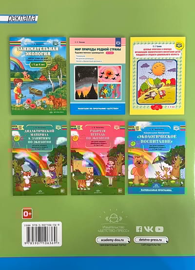 The workbook is designed for independent work with it by a child of 4-5 years old with minimal help from an adult. The workbook is based on the partial program for the course "Environmental Education" for preschool children. Each page of the notebook contains thematic practical tasks and recommendations for their fulfillment. The tasks are oriented to the development of imagination, thinking, fine motor skills (in the process of practical activities), and creative abilities of children aged 4-5.