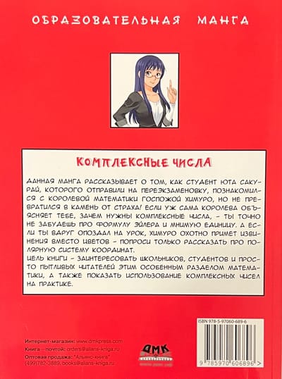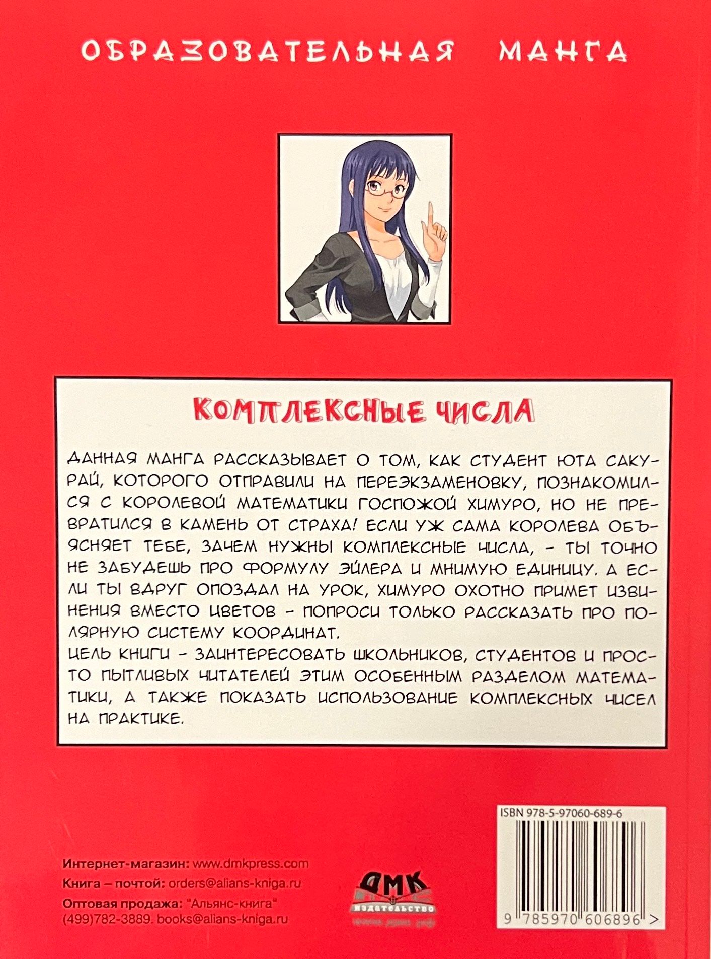 This manga tells the story of how the student Utah Sakurai, who was sent for re-examination, met the queen of mathematics Ms. Himuro, but did not turn into a stone out of fear! If the Queen herself explains to you why complex numbers are needed, you will not forget the Euler formula and the imaginary unit. And if you're late for class, Himuro will gladly accept an apology instead of flowers - just ask about the polar coordinate system. The purpose of the book is to interest schoolchildren, students and simply inquisitive readers in this special section of mathematics, as well as to show the use of complex numbers in practice.